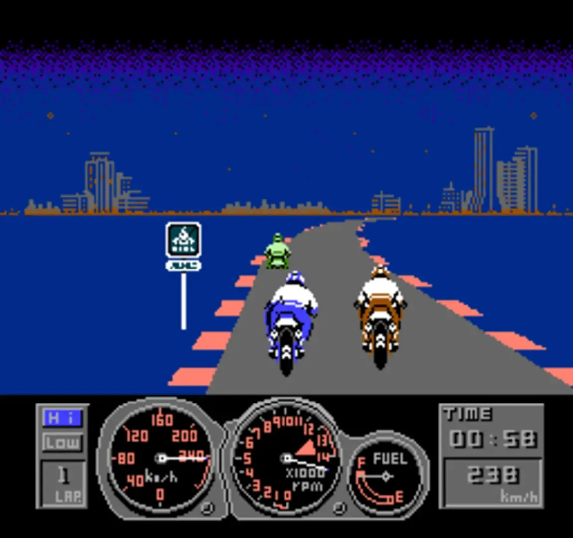 A motorcycle driving game developed by Human and published by Varie for the NES. It was released in Japan only at the end of 1988.