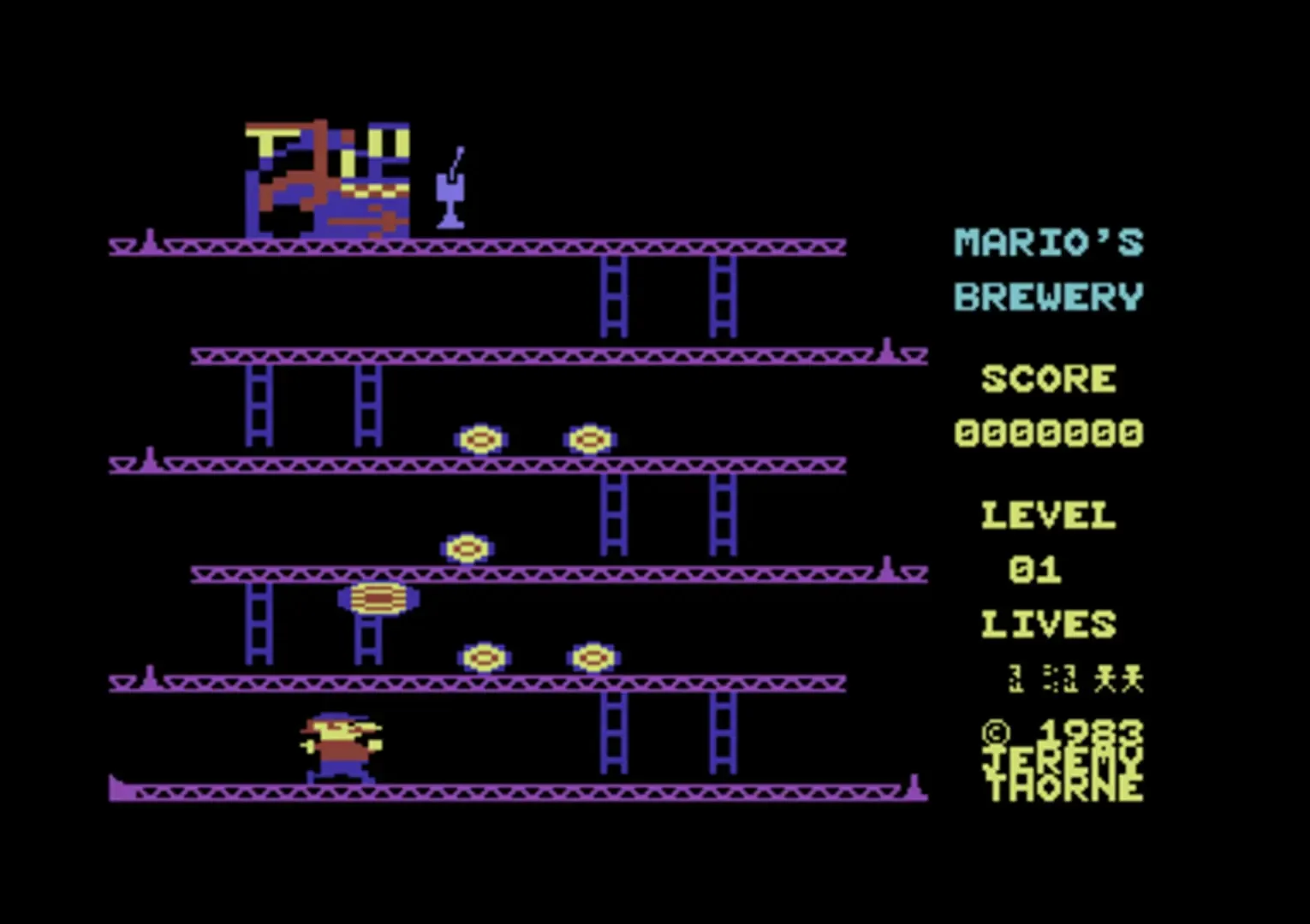 Mario's Brewery is a Commodore 64 Mario game, released without Nintendo's permission. The game is a Donkey Kong clone, with a beer machine replacing Donkey Kong.