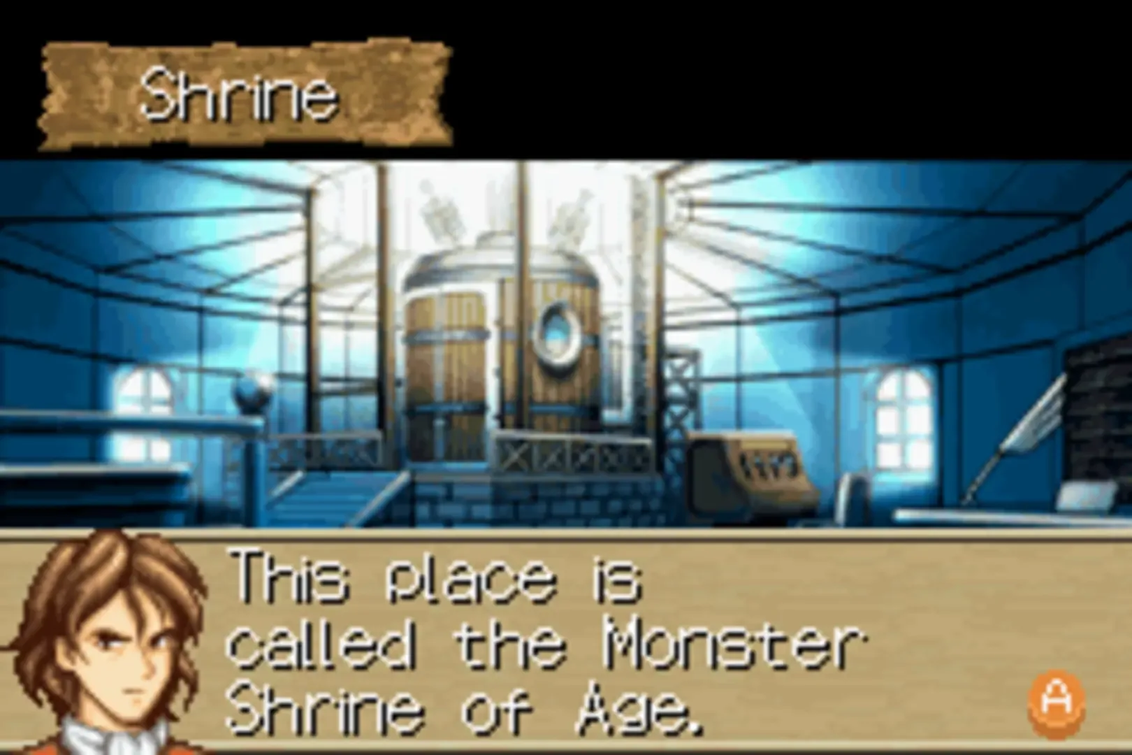 Monster Rancher Advance is a monster-raising simulation that allows players to raise and customize 440 monster types. These monsters can then be tested in in-game tournaments, or made battle against other players's ones in two-player mode (by the GBA link cable). Monsters are created in the game's shrine through the entry of letters, numbers and punctuation symbols. Players begin with the ability to enter up to 4 characters to make monsters, and can unlock the ability to use up to 8 characters through gaining higher trainer ranks. Different words or combinations of characters can not only make different types of monsters, but also each monster can have varying attributes and characteristics, making each one unique. Players then train the monsters by choosing which foods to feed them with, which drills to do to raise attributes, what training to send them to for learning new attacks, and what items to give them. The game starts with a modest amount of money with which food and items can be purchased; more money is earned in tournaments. Gameplay revolves around planning training sessions, adding new attacks and juggling the bank account, along with attempting to win tournaments. As monsters age, they can be added to a coaching staff to help raise new monsters to better attributes, or they can be combined with other monsters to make stronger babies. Monsters do not die in this game, however they do face an enforced retirement age. There is a storyline, where some characters from older Monster Rancher games are back, and new characters are introduced. The gameplay itself, like most other Monster Rancher games, is open-ended. The two-player mode, requiring the link cable and two copies of the game, allows players to test the monsters they have raised against each other. It also allows players to trade items and cash money, to wager items or cash on tournaments, and trade raised monsters bringing them into each others' game files.