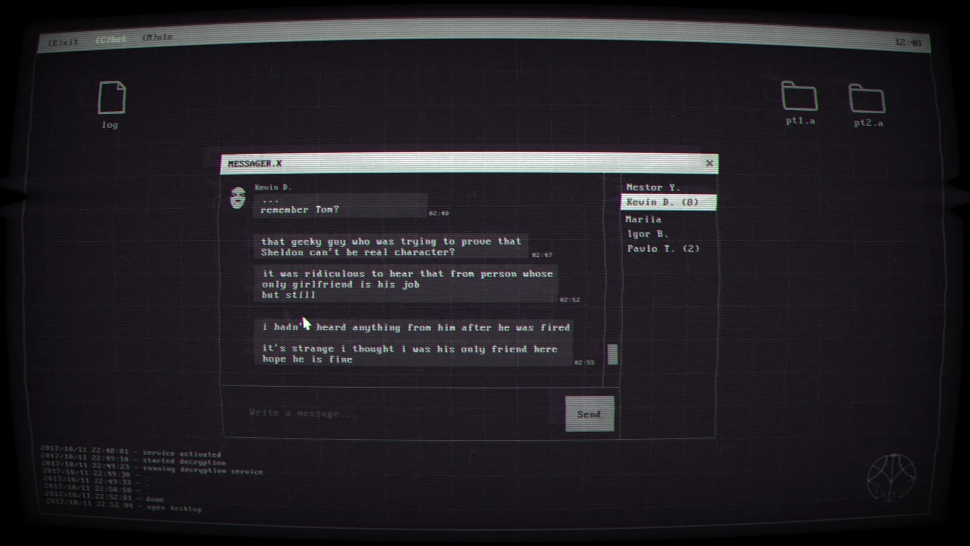 You are James Garner, a security engineer at Mantis Corp., a leading tech company in weaponry field. You got a usual task to decrypt company files. Unusual is that these files contain bizarre chat. Things become weirder when you realize that your job is to “hack love story.” Why is this so important for Mantis? What can be hidden in someone's conversation? What will you risk to find out the truth? Sorry, James is non-linear story-driven puzzle game which takes unusual step on storytelling. You will discover plot through dialogues of two strangers and learn a tale about James, whose role is to decrypt files containing that chat. Along with creepy thriller and conspiracy atmosphere, there is the unique game mechanic that reminds mix of Sudoku and Minesweeper-like gameplay.