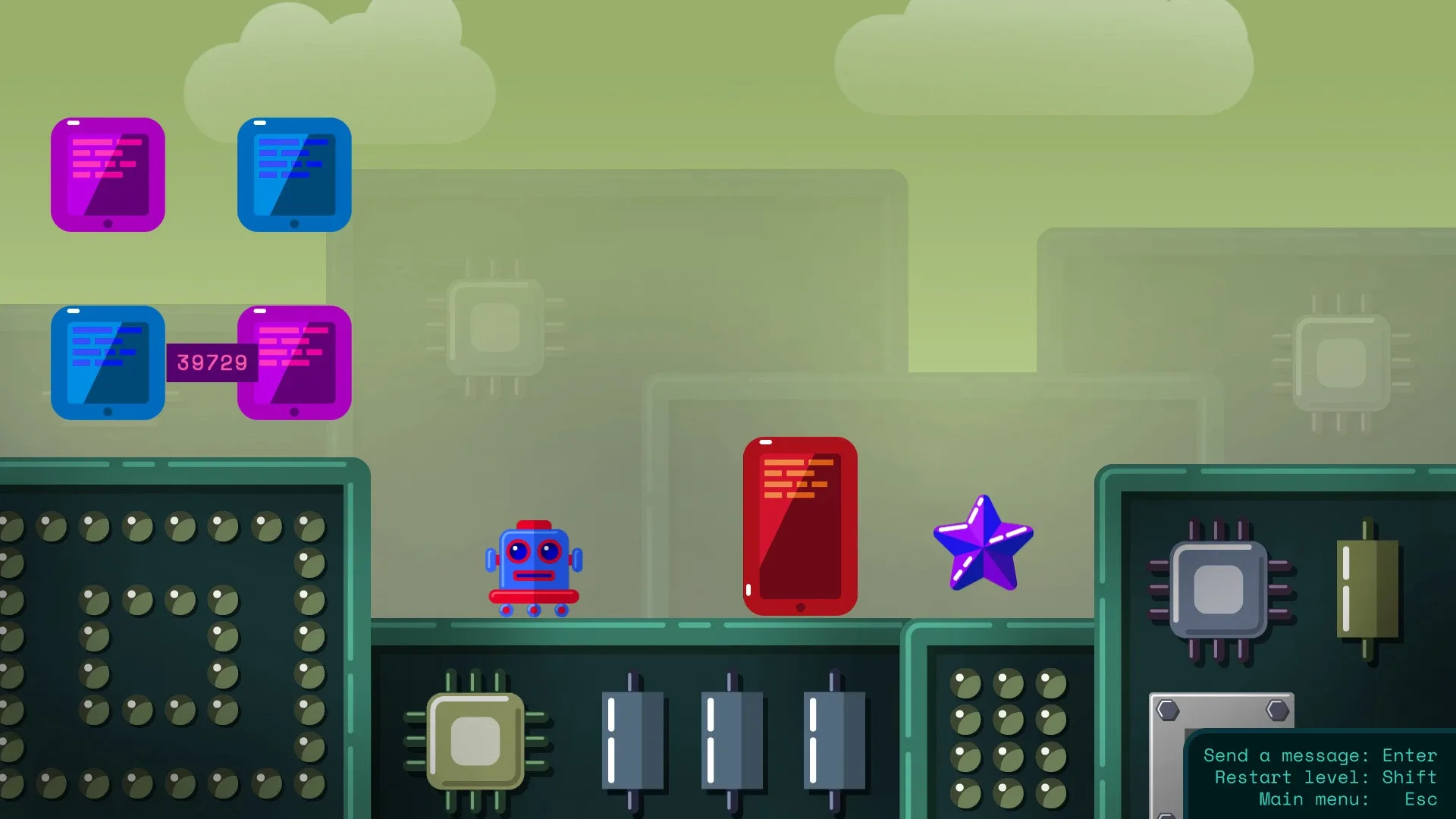 Do you want to learn programming while playing video game or test your code writing skills? This puzzle game is here for you! In Code World you control the robot that can walk around the world and send messages to devices. Every device reacts on those messages according to its Python code. You will have to read this code, understand what messages to send and write your own code.
