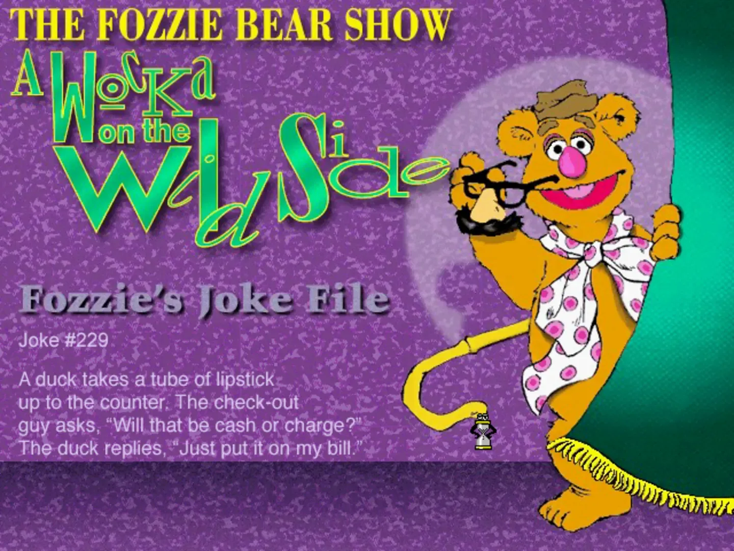 The Muppets are trapped inside your computer and it's your job to rescue them! Dive into The Muppet CD-ROM: Muppets Inside, a hilarious "misadventure" that combines challenging gameplay with witty, offbeat Muppet humor. Your goal is to round up the Muppets and along the way you'll encounter seven Muppetized games: help the Swedish Chef battle vicious vegetables in "Kitchens of Doom," but don't get lost in the Carpal Tunnel! Multiple skill levels guarantee fun for everyone, from novices to experienced gamers. With Muppets Inside you'll meet the latest members of the Muppet crew and discover over an hour of new audio and video footage, plus five new songs and classic clips from The Muppet Show.
