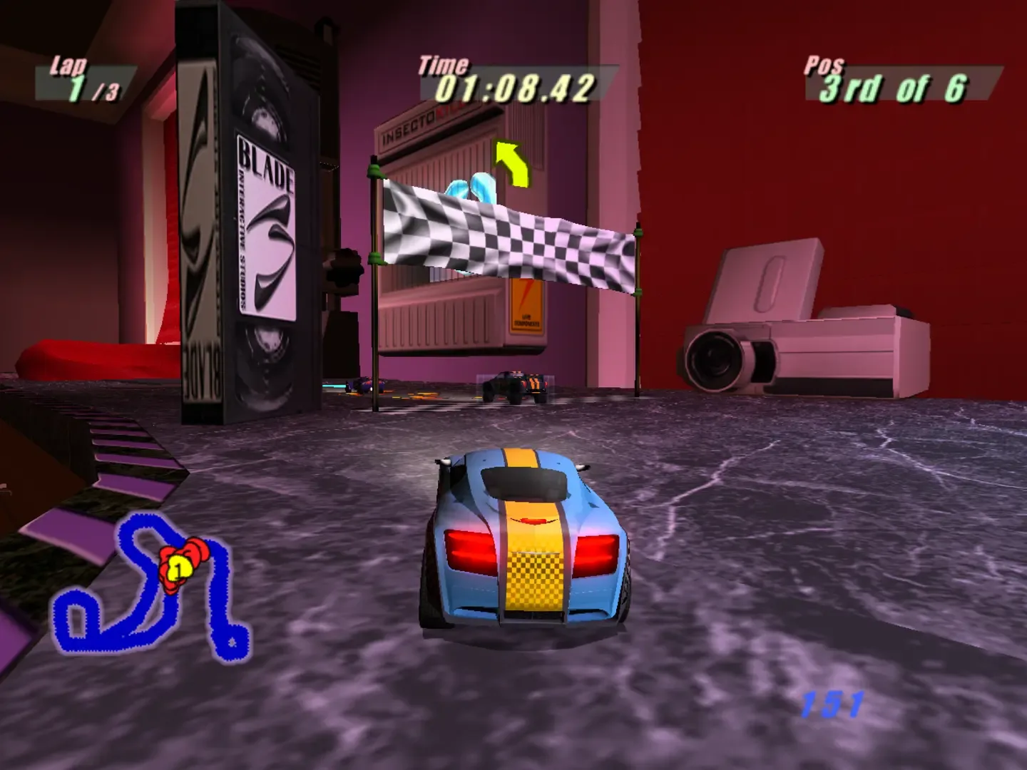 In the twisted Room Zoom manor, you must use everything under the roof to hone your driving skills and take the checkered flag. Room Zoom puts you in the driver's seat of toy cars to race through every room in the house, including a spooky lab and a hidden tomb, both online and offline. In each room you'll find objects to push, bump, or blow up; power-ups to defend against aggressive drivers; and secret passages. Eight interactive environments, with unrestricted driving areas and hidden features, make each race an adventure.
