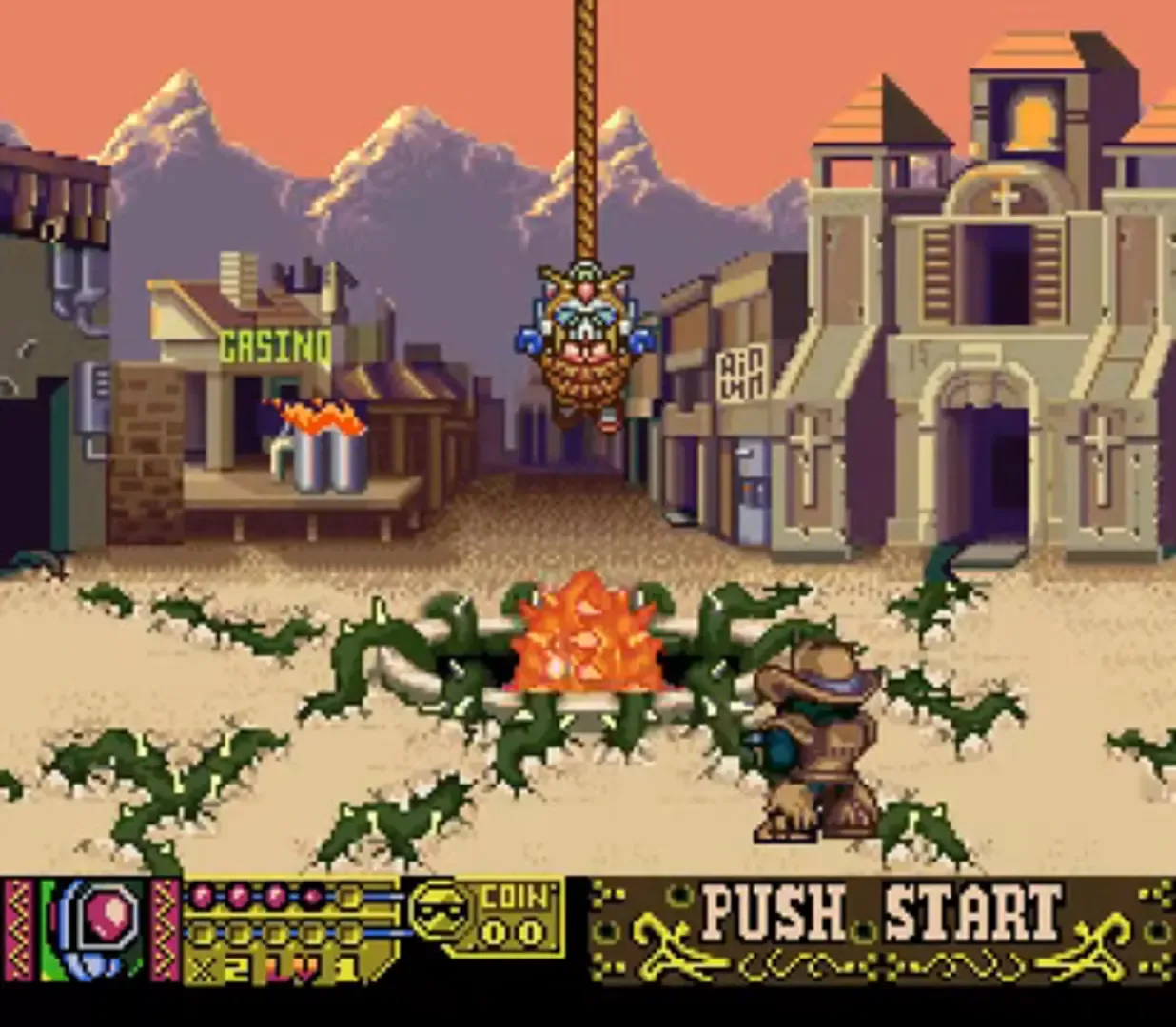 A side-scrolling shooter game that is part of Banpresto's Compati Hero Series. The fifth Great Battle adopts a Western theme, with some stages inspired by Natsume's Wild Guns.