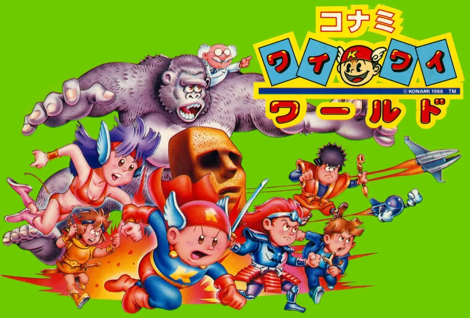 A difficult platformer with characters from the Konami world. You can play with Simon Belmont, Moai, Kong, Goemon, and others.