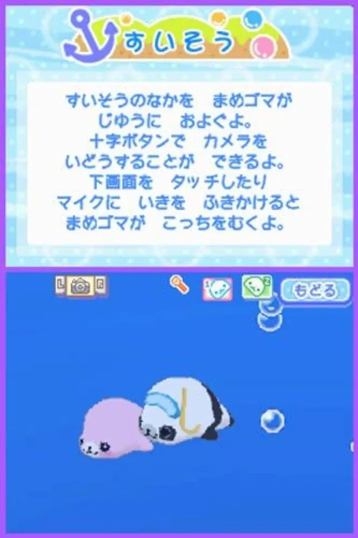 The 3rd installment of the "Mamegoma" series, in which you raise seals and Mamegoma that are small enough to fit in your hand, is now available! There are 40 new types of Mamegoma in total! Two Mamegoma can be raised together, and you can pet them, tickle them, and touch them with a stylus. Items such as rice and interior items are also available, and there are 180 cosplay items that can be worn by Mamegoma. Also, when you play music to Mamegoma, they will remember the song and hum with a cute cry.