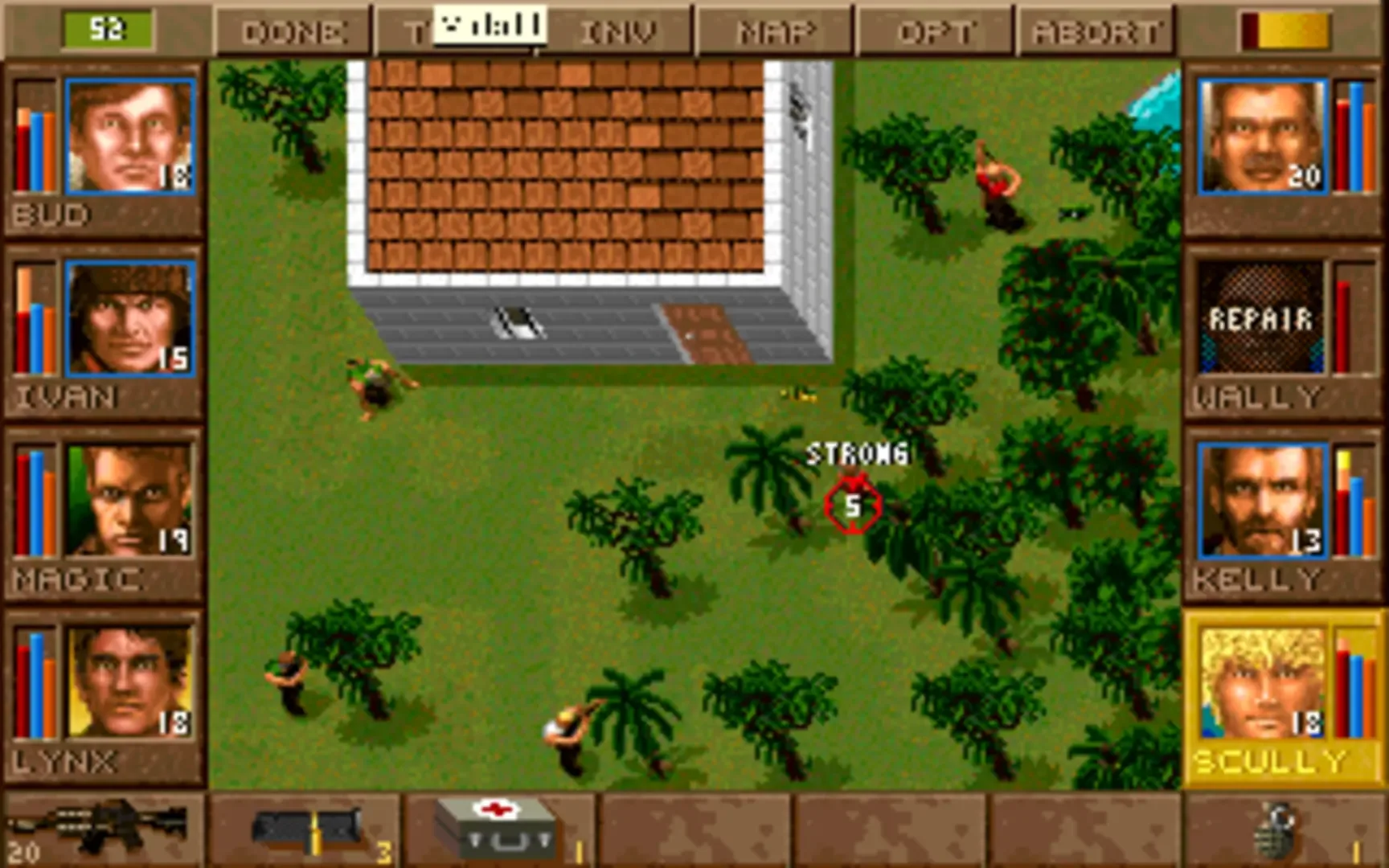 Jagged Alliance combines turn-based strategy and role-playing elements in a gripping mercenary-themed adventure. Set on the fictional island of Metavira, players are tasked by scientist Jack Richards and his daughter Brenda to reclaim control of the medicinal Fallow trees from the villainous Santino. Players must recruit and manage a team of mercenaries from a diverse roster of 60 unique characters, each with distinct personalities, skills, and voiced dialogue. The game offers tactical combat and non-linear gameplay, allowing players to approach missions with strategic freedom. With three difficulty levels and a replay feature, Jagged Alliance challenges players to refine their tactics and exploit enemy weaknesses. This blend of strategy and RPG elements immerses players in a high-stakes conflict where every decision can turn the tide of battle on the contested island of Metavira.