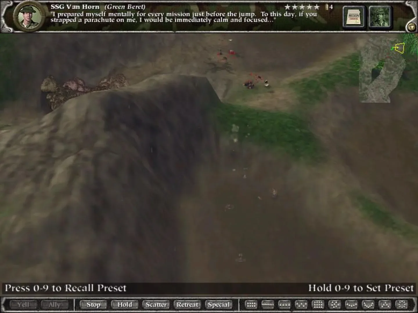 Green Berets is a total conversion for Myth II that places player in the jungles of Vietnam. Like the original Myth games, Green Berets is a 3-D war simulation that places great emphasis on strategy and terrain. Highly detailed units fire M-16s, M-60's, throw grenades, dodge mortars and call in helicopter support. Green Berets features ten new levels and 18 new units. Missions include destroying VC anti-air emplacements, protecting fire bases, and rescuing POWs. In addition to single player, Green Berets has multiplayer capabilities and includes the original Myth II game and level and unit editors Fear and Loathing.