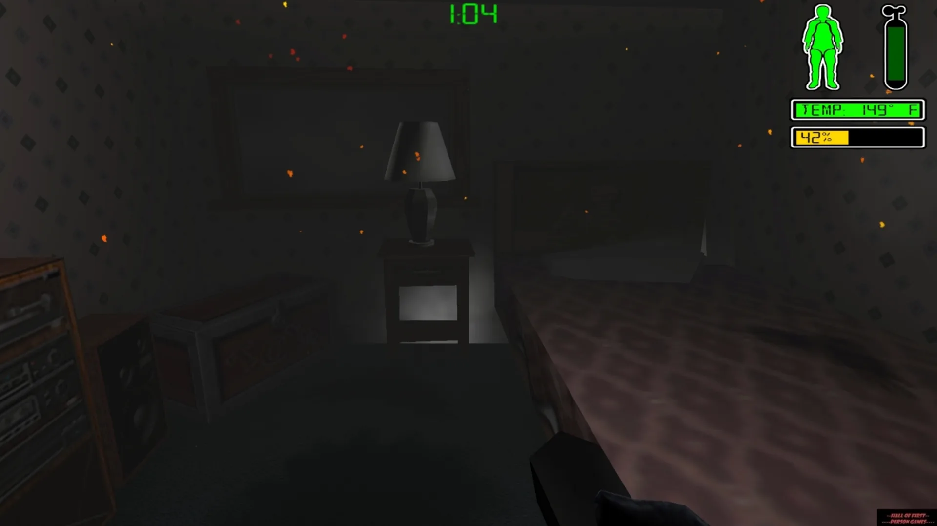 911 Fire Rescue is a first-person "Douser" that pits you against raging fires. You run into burning buildings with your fire hose to put out fires and rescue trapped victims. The game is set in houses and buildings, simulating smoke that blurs your vision and burns your lungs. The missions require you to find the people trapped inside.
