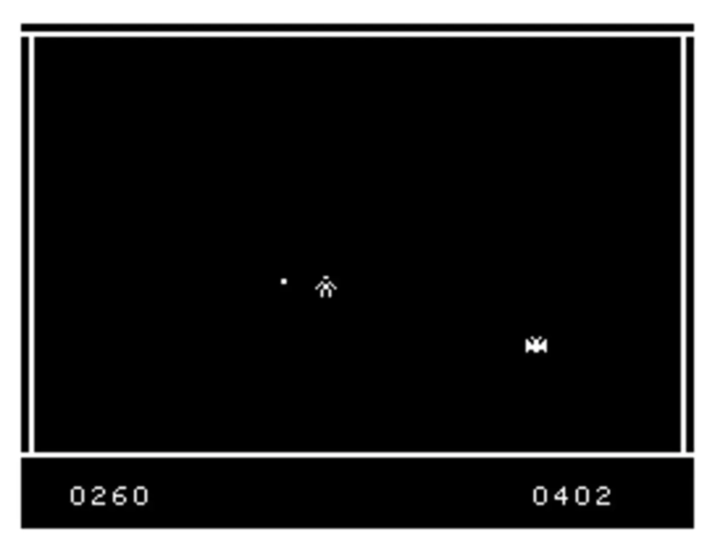Destroy all eggs! With that as your only instructions, you are thrown into a room filled with pterodactyl eggs. The controls are similar to many versions of Robotron, in that you shoot in whichever direction you are walking. The task of destroying the eggs seems easy until they begin to hatch. The new-born pterodactyls are not only lethal, but they lay more eggs, prolonging your misery. The game runs in black and white high resolution mode and uses small characters, only a character tall.