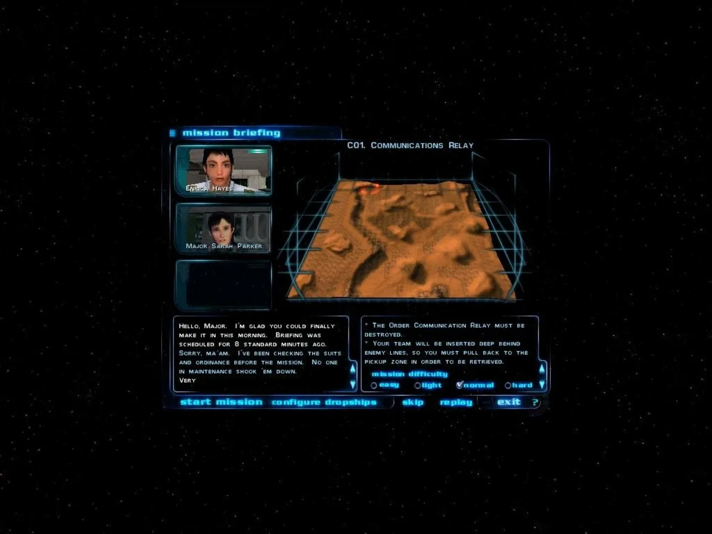 Ground Control is set in the 25th century. Mankind emerged from the devastation of the Third World War (known in the game as "The Sixteen-minutes War", which almost wiped out the whole of humanity) and managed to colonize several planets across the galaxy. The Earth is ruled by a council called GCC (Global Central Command) that is formed by elected representatives and representatives of the mega corporations which rose to power after the fall of the Terran nations. The game's plot revolves around the conflict between the Crayven Corporation and the Order of the New Dawn for the possession of the distant world of Krig 7-B. In the beginning of the game, the player assumes the role of Major Sarah Parker of the Crayven Corporation as she leads the Crayven forces in order to eliminate the presence of the "Dawnies" (her derogatory nickname in reference to followers of the Order). In the second campaign, the player assumes control of Deacon Jarred Stone in his attempt to drive the "Crays" from the surface of Krig 7-B. During the course of the campaign, however, both characters unravel a dark secret hidden within the depths of the planet, a secret that threatens all mankind, and turns out to be the reason for such interest in what seems to be a desolate fringe world.