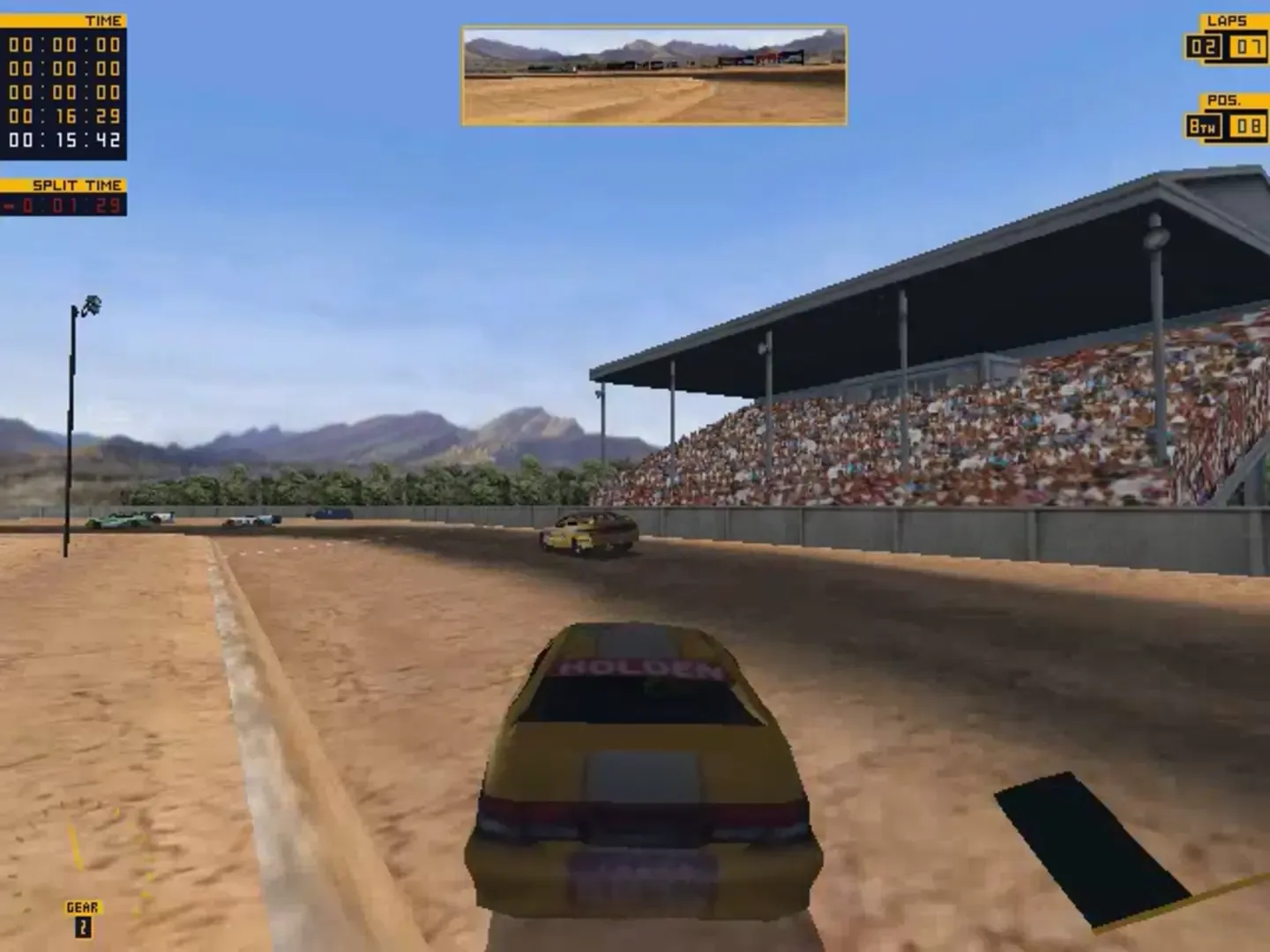 Dirt Track Racing hits Australia! (Designer's home turf) Starring 6 additional Australian muscle cars (the Holdens). Twelve different series, 3 different classes of cars (total of 24), 30 different tracks of ovals, tri-ovals, D-ovals, and figure-8's, full career mode including parts, tuning, sponsors. Force feedback support based on actual car physics, changing track conditions, and more! Race up to 9 other players online!