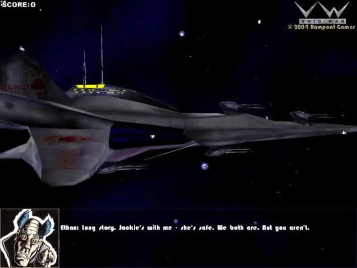 Void War is a single-player 3D, First-Person Space Dogfight action game for Windows PCs. The player may fly any of six starfighters in a space arenas called "Void Points" bounded by pylons that pull fighters back into the battle should they stray to far from the action. Void War's action includes Newtonian-style physics and elements such as gravitational pulls (in a nod to the great-grandaddy of computer games, "Spacewar").