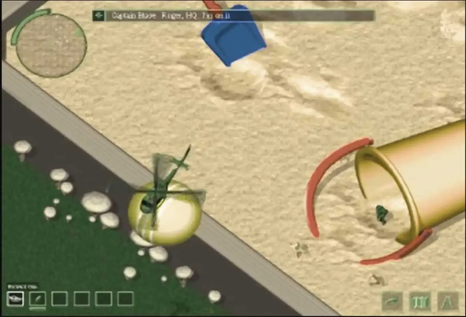Take to the skies with this new addition to the Army Men series. This time you must take control of the latest air attack machines in the world of war, and bash the plastic out of the Tan forces before they do it to you!! Fly through the bathroom, clash in the sandbox or destroy the flower garden, the choice is yours. Plus four new ways to clash with your pals.