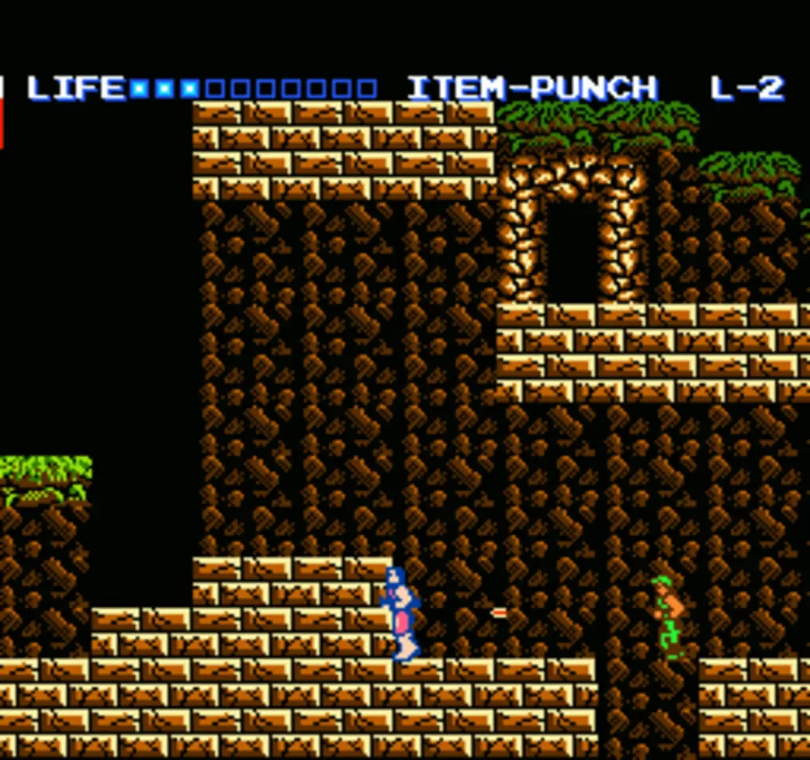 Predator for the NES, MSX2 and TRS-80 Color Computer (also known as "Predator: Soon The Hunt Will Begin") is a 2D action game. There are 30 stages in the game, and each one is split up into two modes: Jungle Mode, and Big Mode. In Jungle Mode, the object of the game is to survive the dangers of the jungle while you shoot down guerillas and wildlife using a variety of weapons including machine guns, laser rays, and grenades (all with unlimited ammo). You exit the stage by entering a cave to proceed to the next level. Sometimes there is more than one cave, and you will be warped to another stage other than the next one, depending on what cave you enter. After three or so stages, you enter the game's Big Mode. The object here is to blast blue and purple spheres before they have a chance to hurt you. Some spheres have power-ups that will increase your firepower. When you have made some distance, you have to defeat the Predator before you can continue on to the next stage. Big Mode is the same throughout the game, but the only difference here is the Predator's attack pattern.