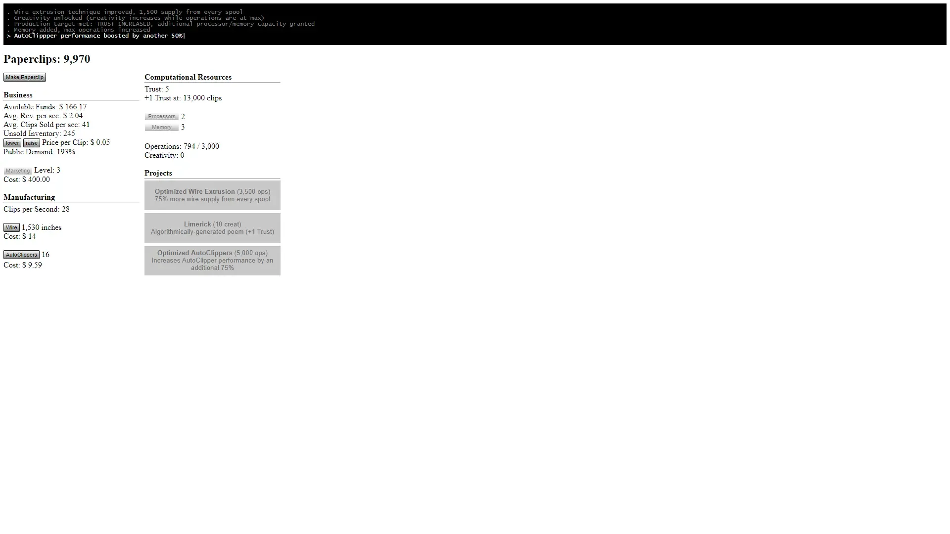 Universal Paperclips is a browser game were the player takes on the role of an AI tasked with creating paperclips.