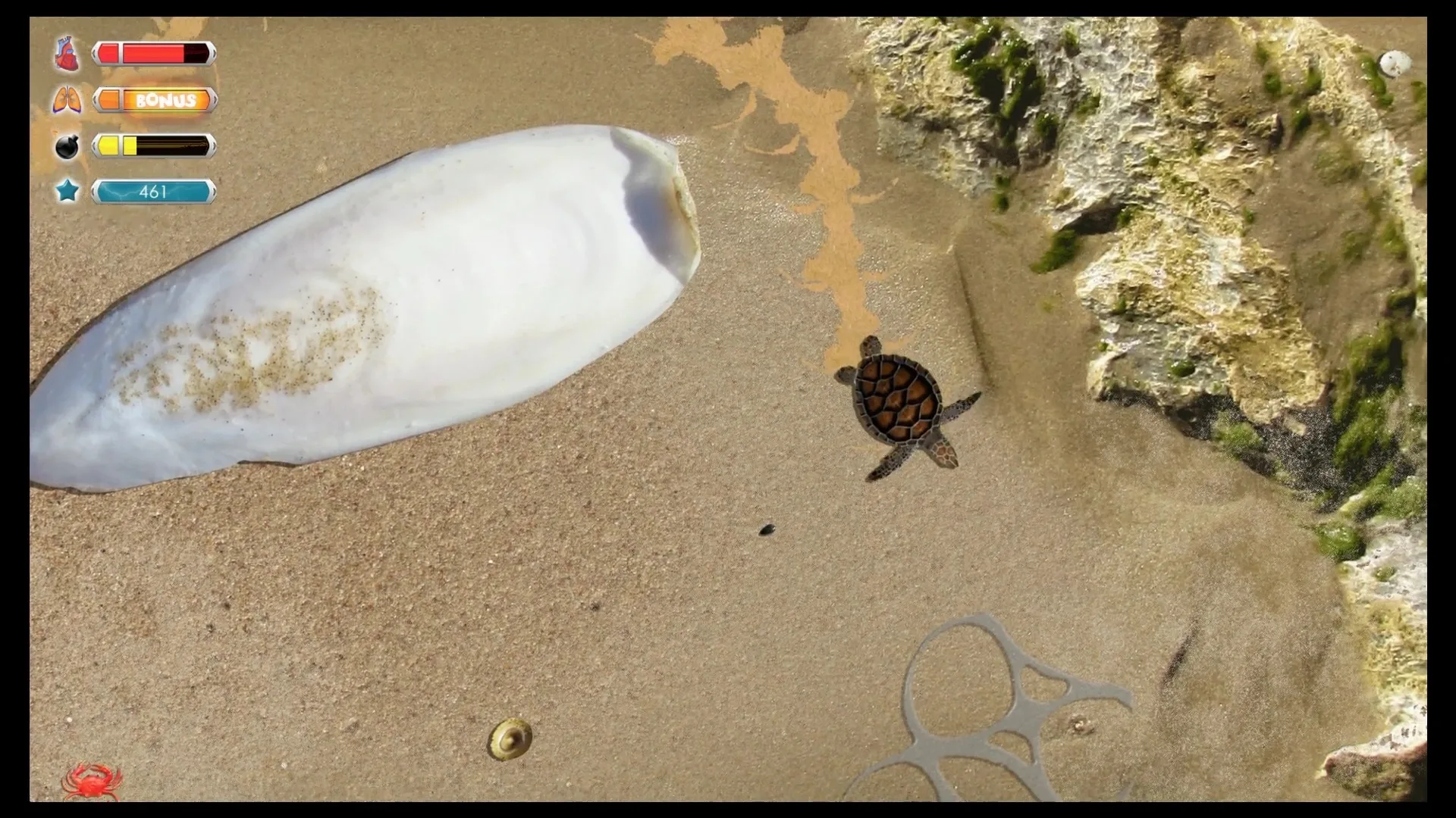 Turtle Quest is a game based on a baby turtle hatching from its egg and needing to get to the sea.