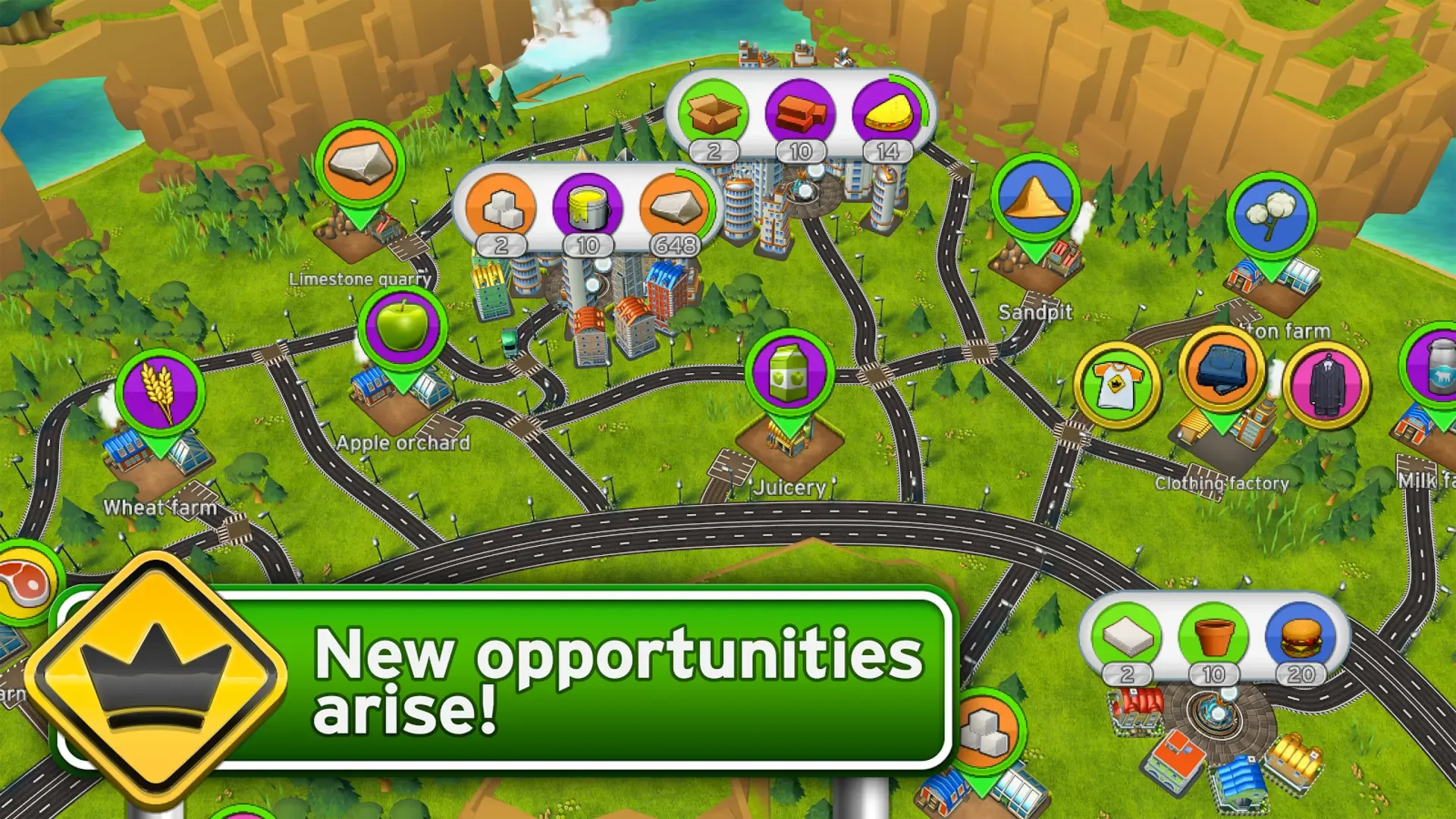 Start your transportation business and grow your island into an economic superpower! Transport goods from farms and mines to factories and cities to deliver what they need. Your island will grow and prosper to be the envy of the world. Make cities grow into megapolises, find more resources, manufacture high-tech goods and build the transportation empire of your dreams. Collect the shiniest fleet of trucks, and other vehicles (buses, airports etc. coming soon!) and become a millionaire.