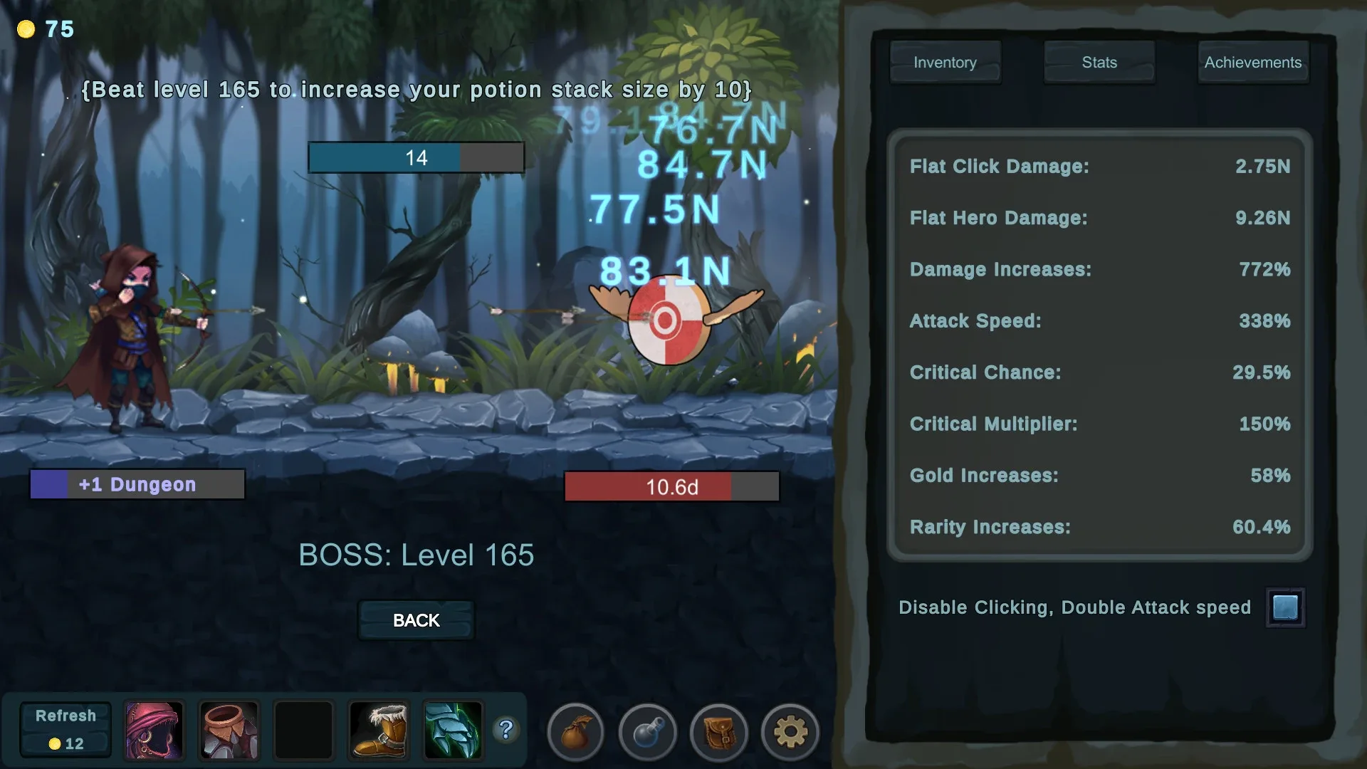 Click to destroy your targets, or stay AFK and let the Archer destroy them for you. Loot potions to increase your damage. Equip rare gear to improve your stats. Farm epic books and use them on your items to modify them. Also, can you reach End Game to invade legendary dungeons?