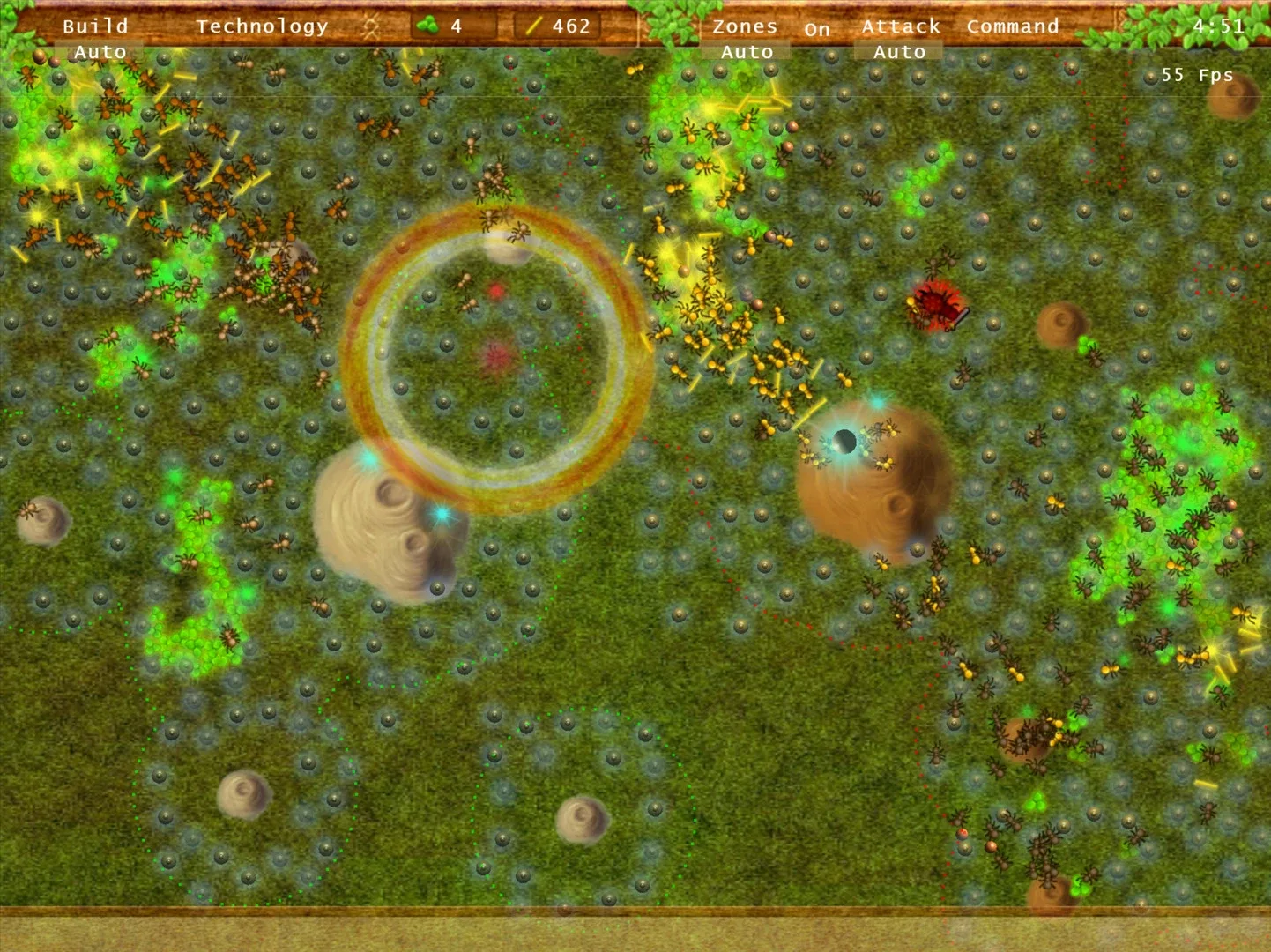 There are 2 colonies on the playing field, one of which you control. You have to improve it, develop it technologically and defeat the enemy.