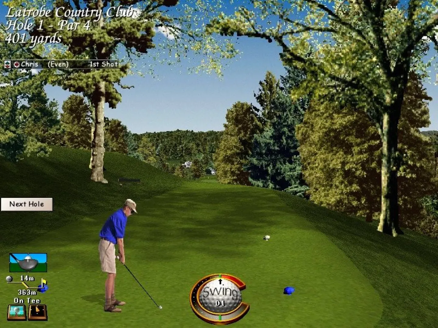Links LS 1998 Edition is the first game in the Links series to run in native Windows 95 mode. "Look ahead" rendering sees the game predict where your next shot will be from, reducing redraw times. There are two new offline tournaments for a total of six, and an internet play mode. Perhaps in response to Tiger Woods' success at the time, a black-skinned golfer is added to this version. You now view other golfers on the main play screen, and the action is tracked by 8 smart cameras. New visual enhancements include water reflections, waving flags, blimps, balloons, airplanes and environmental haze and fog.