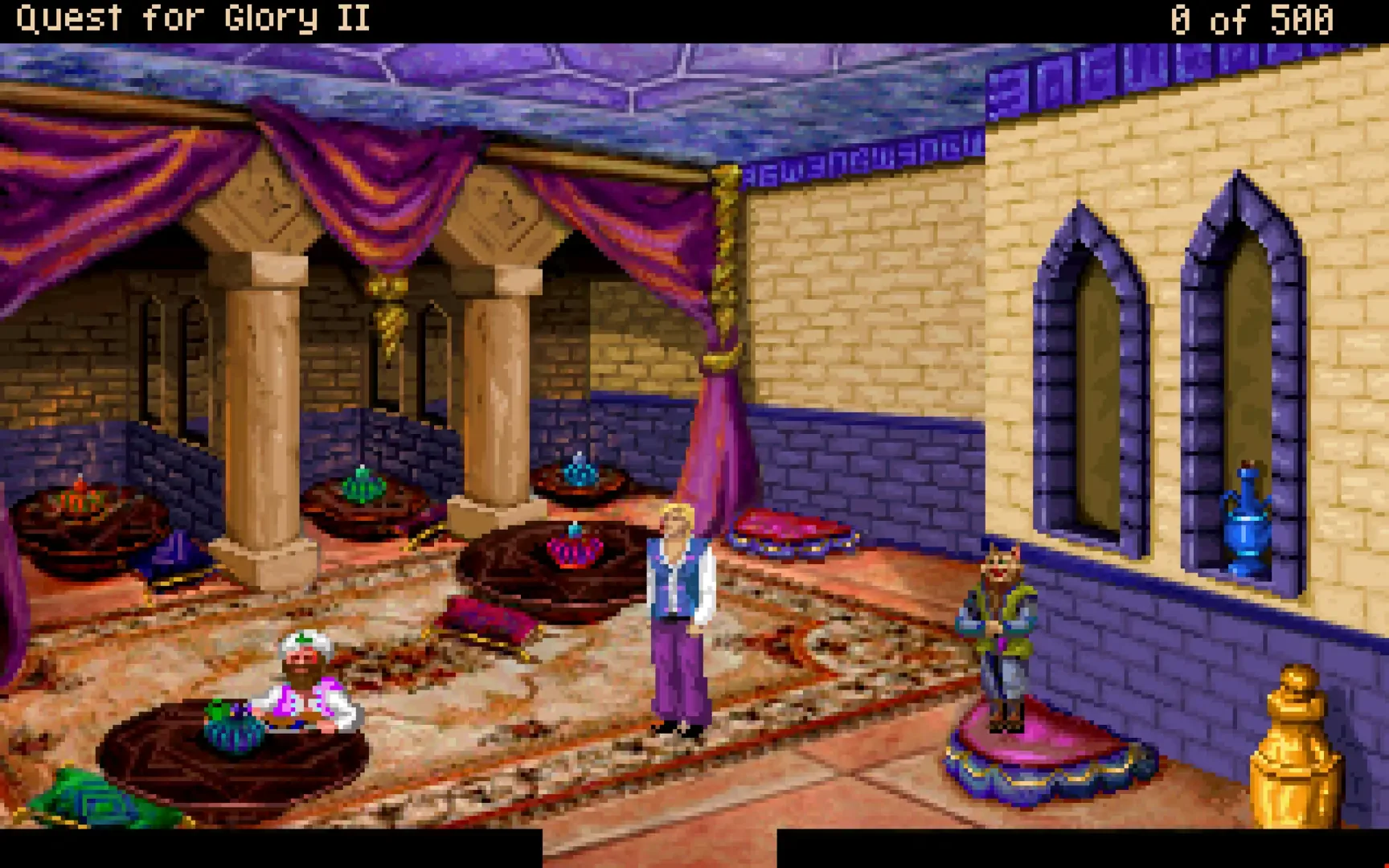 Quest for Glory II is a remake of the classic Adventure-RPG. The player is cast as a journeyman hero seeking to aid the desert land of Shapeir.
