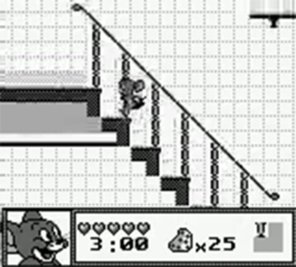 Tom has mouse-napped Jerry's nephew Tuffy and locked him in a trunk in the attic. You and your furry little buddy Jerry must dash, jump, and climb from the basement up through every level of the house to rescue him in time. Jerry's main defense is his unlimited supply of marbles. Pick up other items such as bubble gum, meat cleaver, cups of water, moth balls, hammer, invisible ink and drill to overcome the enemies and obstacles in your way. Make sure you outwit Tom whenever he appears.