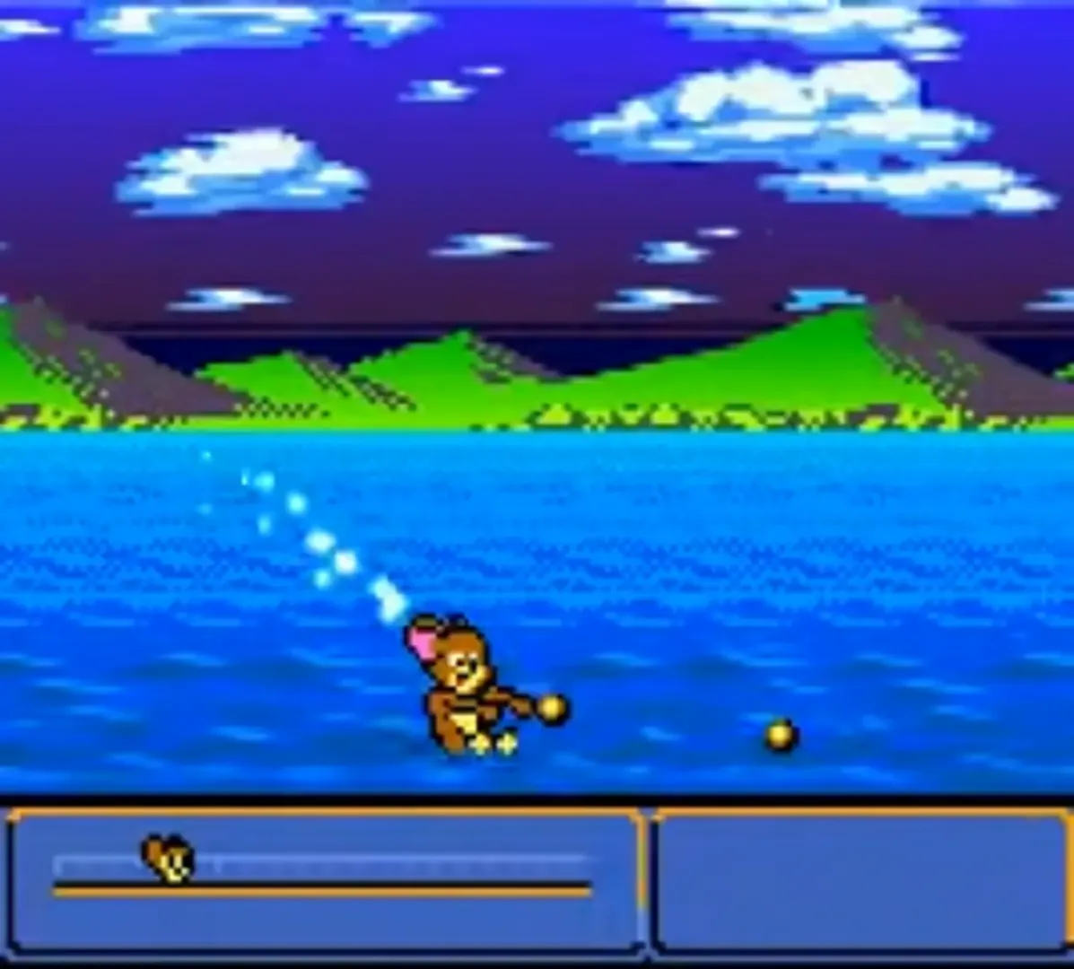 The most beloved cat and mouse team in cartoondom is together again in TOM AND JERRY IN MOUSE ATTACKS! for the Game Boy Color. Developer NewKidCo has gone all out to ensure this platform-jumping, pie-splattering, mini-game bursting title is fit for kids of all ages. In hectic, side-scrolling mayhem, you take control of everyone's favorite little brown mouse Jerry and work your way through five danger-filled levels in an attempt to free your kidnapped pals from the clutches of Tom. Collect as many golden items as you can as you open doors leading to a wide variety of challenging mini-games (eight to be exact). Complete slide-style puzzles, engage in a creamy pie-throwing contest (try to hit Tom in the face), and even water ski! You'll have to climb slippery poles, crash through obstacles, and make death-defying jumps in order to gather together your friends. Be careful to avoid jumping fish and creepy spiders if you want to succeed in the frantic, quick-reflex, button-pounding platform party of TOM AND JERRY IN MOUSE ATTACKS!