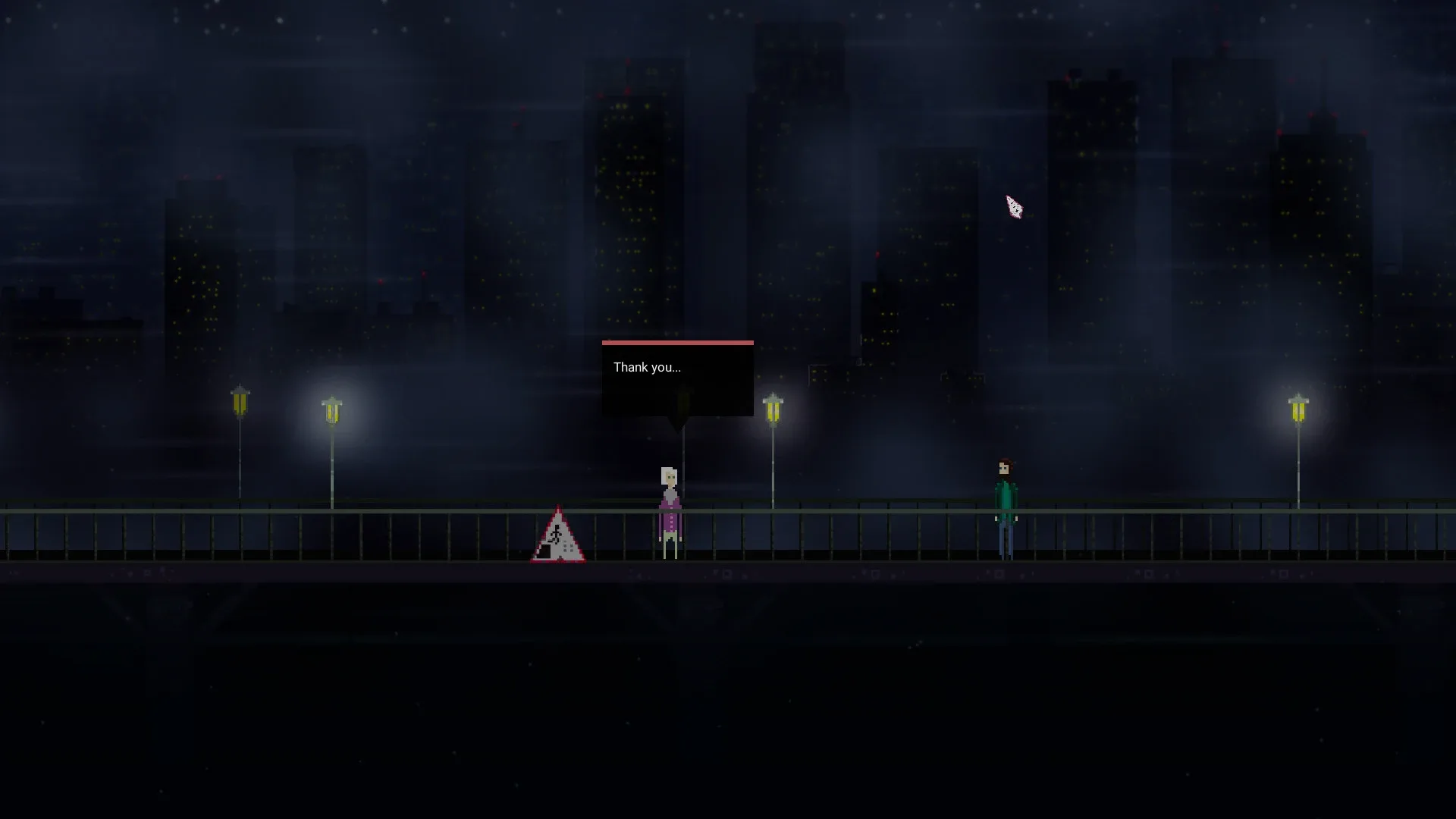 Suicide bridge. You coming here every night for saving lost people. Can you save them all? Can you decide should bad boys live or die? Does it okay to let ill guys ends their sufferings? Help or just leave them - all is up to you. Oh, you still need money for living. And dont forget: Life is beautiful! No matter what.