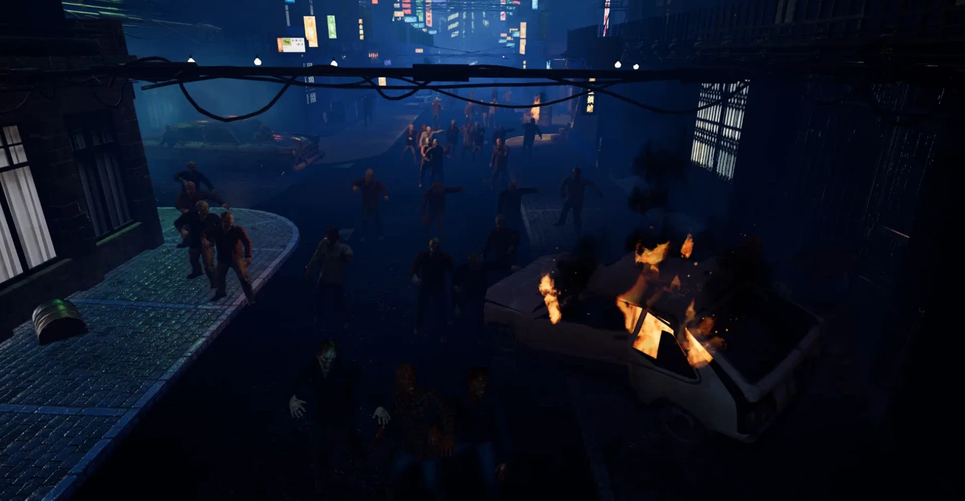 Dawn City is a first-person VR shooting game in which the player must resist zombie monster attacks from all sides. As time goes on, the diffiuclty of the game rises. How many zombie attacks can you handle?