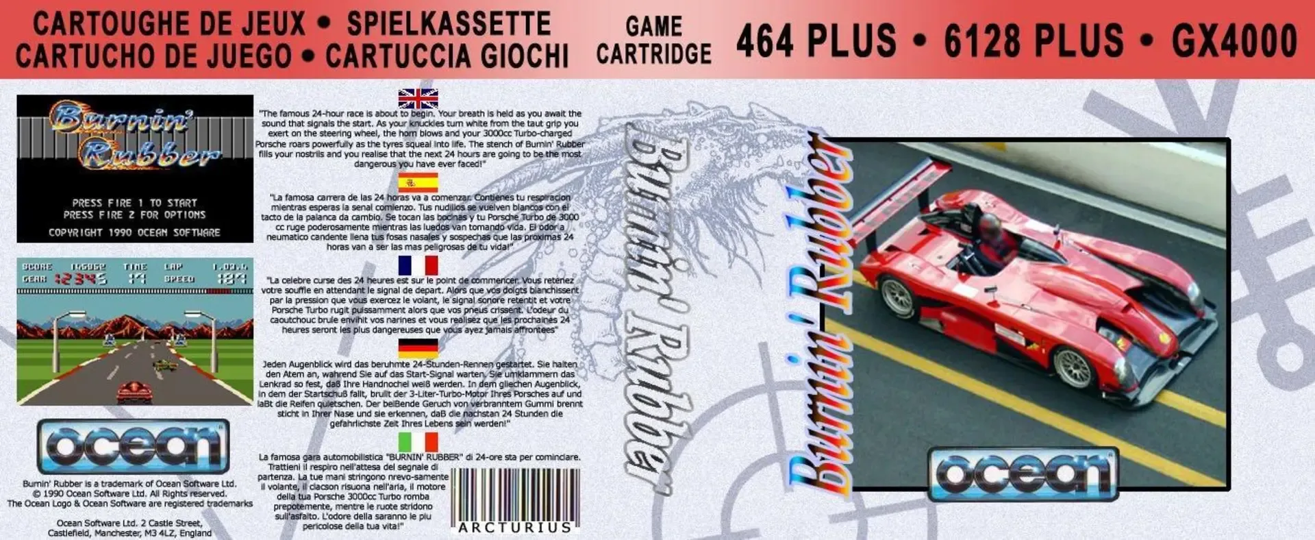 Burnin' Rubber, a GX4000/CPC plus launch/bundle title (and one of the few exclusives for the range), is an arcade-style racing game, much inspired by the developers' earlier WEC Le Mans. The game depicts a Le Mans-inspired endurance race over four laps consisting of four checkpoints each. The game begins with a qualification lap before the race itself starts. Racing is arcade-style, with Outrun-style 3rd person perspective view graphics and a timer that indicates how much time is left before the next checkpoint has to be reached. Opponents fill the track and billboards fill its sidelines - crashing too fast into either displays a spectacular crash animation and takes valuable time off the clock. The game offers a choice of automatic or manual gear switching. The time of day passes during racing, thus offering driving in sunsets and sunrises and during the night.