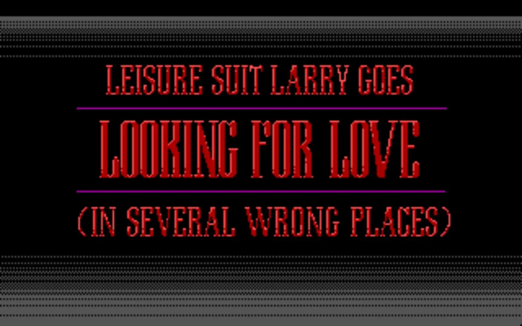 Leisure Suit Larry Goes Looking for Love (In Several Wrong Places) is the second game in Al Lowe's Leisure Suit Larry series. Continuing the plot of the previous game, the swinging single Larry Laffer has finally found his true love and is happily living with her. Right? Wrong!.. Because Larry is mercilessly thrown out by his great love and is left all alone, penniless, and womanless, in Los Angeles. Accidentally, Larry comes into contact with KGB agents who will pursue him all over the globe from now on. And there is also the evil doctor Noontonyt plotting evil schemes on a remote tropical island... Looks like Larry will have to forget about his women-related problems for now... or is it so? The second game in the series introduces an improved engine (allowing for full-screen graphics and mouse control for movement). As opposed to the first game, which relied on exploration of one large area, the sequel has a more linear progression, the player being continuously taken to new locations as dictated by the plot. There are less puzzles in this installment than in the previous game; however, the number of ways to die has increased, danger awaiting Larry in most places he visits.