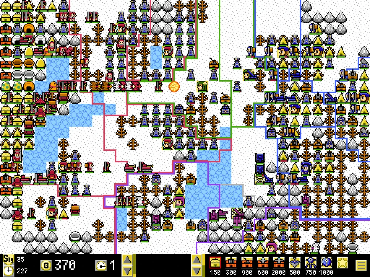 8bit style RTS! You can win at high speed by a speed button. You can win a stage in 5-10 minutes. Easy operation. Your color is "Red". You build "Factory". -> Creates Units! You build "Fortress". -> Atacks Units! When you occupy all towns, you win. You get Buildings and Special Powers.