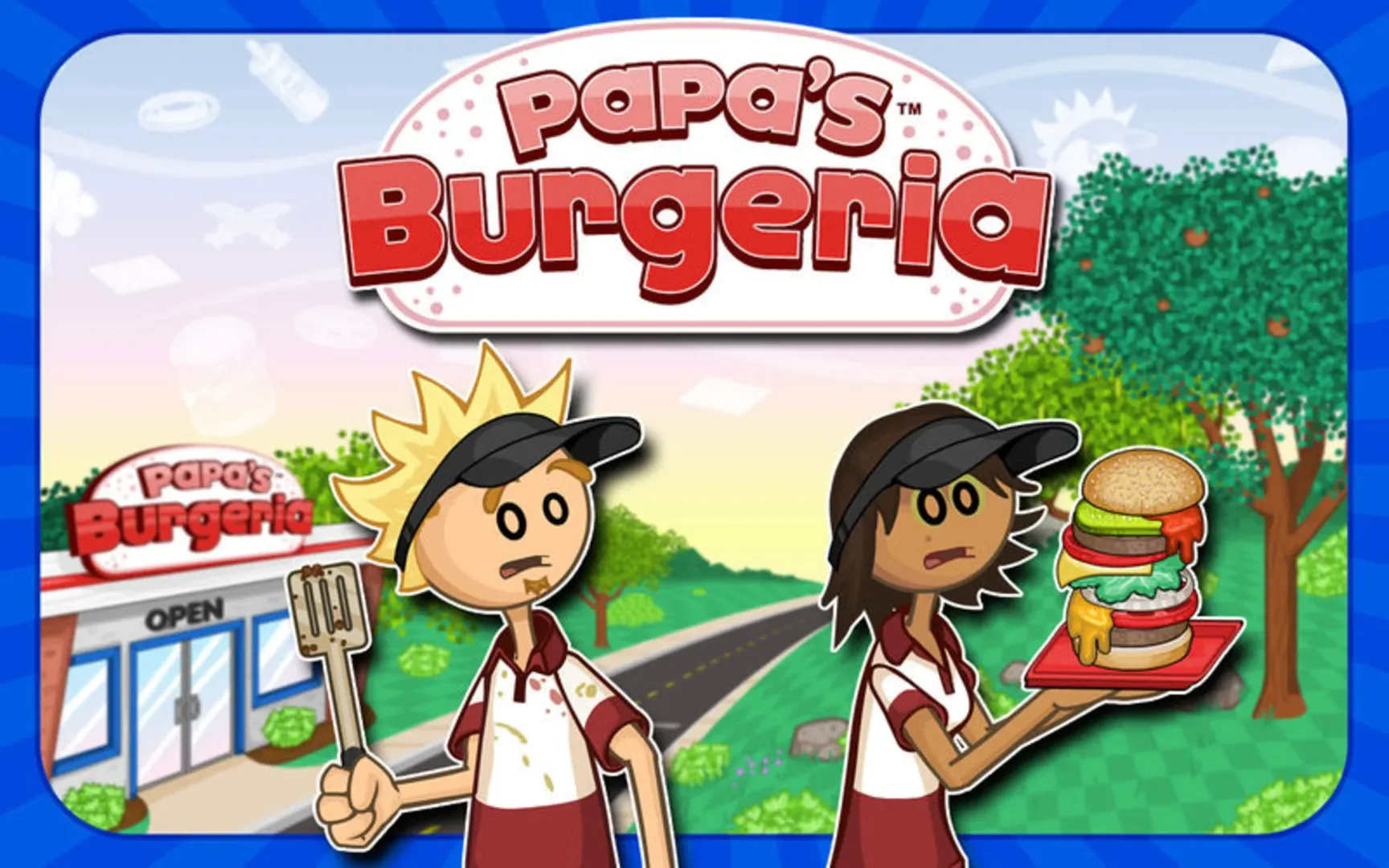 Grab your spatula and get ready for a burger-flipping adventure! In this brand-new edition of Papa's Burgeria, you are unwillingly left in charge of Papa Louie's famous Burgeria. You'll need to take orders, grill patties, add toppings, and serve the burgers to all of your wacky customers. This hands-on time-management game gives you control at each step of the burger-building process. You'll need to multi-task and juggle between each area of the restaurant: Keep an eye out for customers waiting in the lobby, drag and flip burger patties on the grill to cook them just right, and add toppings and sauces to the sandwiches before serving them to your customers! Keep your customers happy to earn more points and level up! As your level rises, you'll unlock new toppings in the shop, and new customers will start visiting the Burgeria! ** NEW FEATURES ** This updated and remastered version of Papa's Burgeria features a variety of new unlockable toppings and sauces, and many new customers not found in previous editions of the game. At the end of each day, you'll also be faced with Closer customers who are very picky about their burgers, and each week you'll be visited by the Food Critic with a chance to earn a tip-boosting Blue Ribbon! Use your hard-earned tips to buy restaurant upgrades and hats to wear, and you can also decorate your lobby with furniture and posters from the Furniture Shop. You'll even earn a Pay Day each week, which you can spend on upgrading your Burgeria! You'll also be able to earn 70 different achievements for various tasks in the Burgeria, including reaching certain ranks, earning Customer Awards on your customers, playing mini-games, and serving burgers with certain toppings. ** MINI GAMES ** As your serve sandwiches to your customers, you'll be rewarded with Game Tickets. At the end of each day, the Great Foodini will arrive with his Traveling Mini-Game Show, where you can use your Game Tickets to play a variety of food-themed Mini Games, and win posters and furniture that you can place in your lobby! ** GAME FEATURES ** - Hands-on burger shop game in the Papa Louie universe - Optimized for full-screen gameplay - Multi-tasking between grilling, stacking, and serving - Over 60 customers to unlock with unique orders - Over 100 furniture items to buy in the Shop and earn through Mini-Games - 70 in-game achievements - Various upgrades and hats to purchase with your earned tips - Challenging Closers and Food Critic