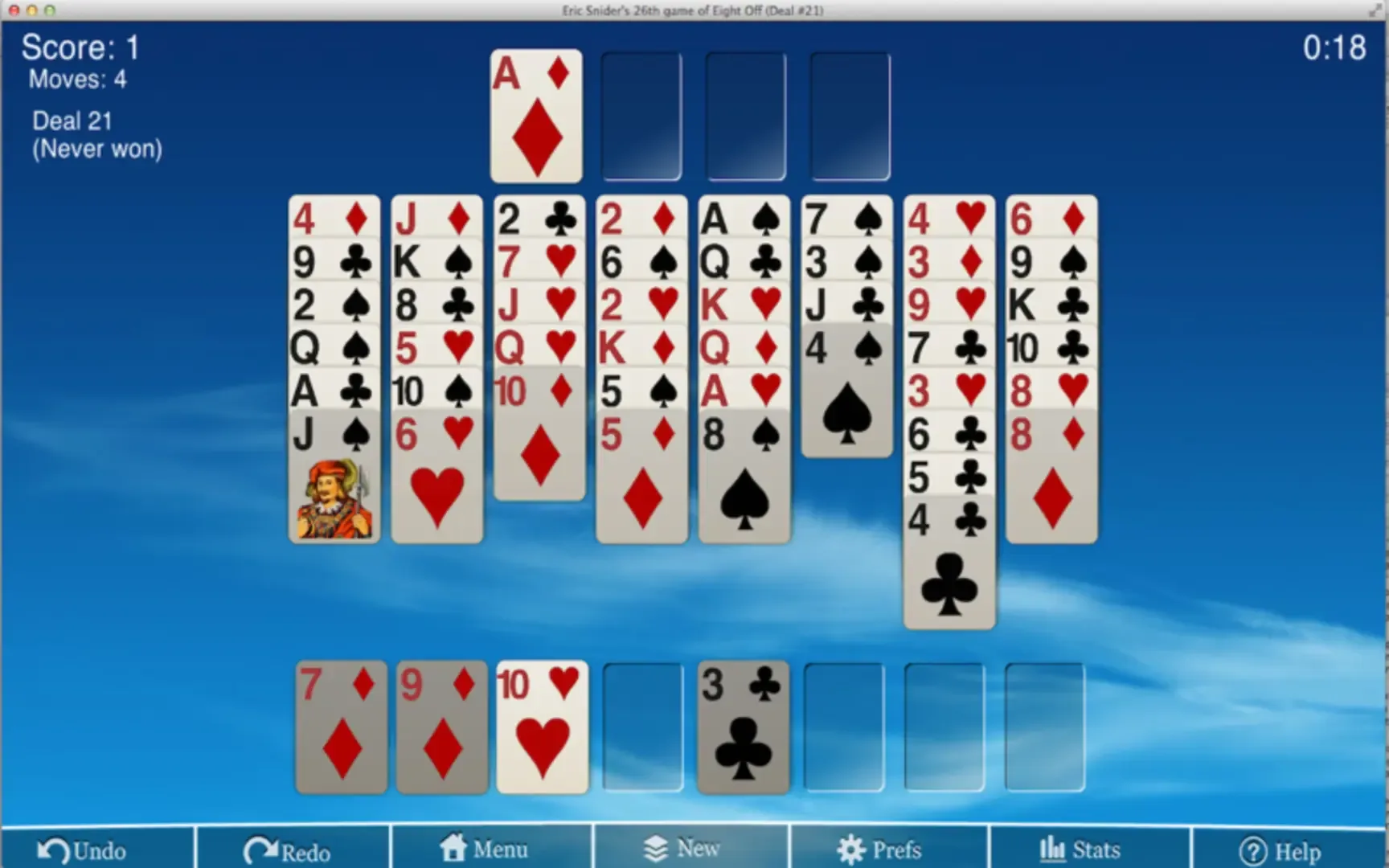 If you like solitaire you'll love Eric's All-in-1 Solitaire for your Mac Some of the 5-star reviews: "Eric is back!" "Best Solitaire ever" "Fun and Challenging" "GREAT" The game menus, help and rules are ONLY in English – Sorry about the crazy list of languages shown in the store. It will be fixed in the next update. DESCRIPTION Written by the same Eric that developed the classic Mac solitaire game "Eric's Ultimate Solitaire." You can drag and drop or tap cards to move them. You can even throw the cards with a shove! Easy-to-use, with lots of games, smooth animation and a fantastic user interface. FEATURES - Over 30 of Eric's favorite solitaire variations including Klondike, FreeCell, Spider, Golf, Montana and more - Subtle sound effects so you can enjoy your music - Drag and drop cards or throw them! - Playable cards wiggle, darken, or brighten - turn off for a bigger challenge - Unlimited Undo - Retina high resolution display support - Game state saved when interrupted - Smart Autoplay – Plays cards up when its safe - Detailed Statistics - Beautiful art, cool particle effects and a fun user-interface – The game menus, help, rules etc are all in English. I apologize that the App Store listing says otherwise. There is only a very small amount of translated text. Follow us on Twitter: