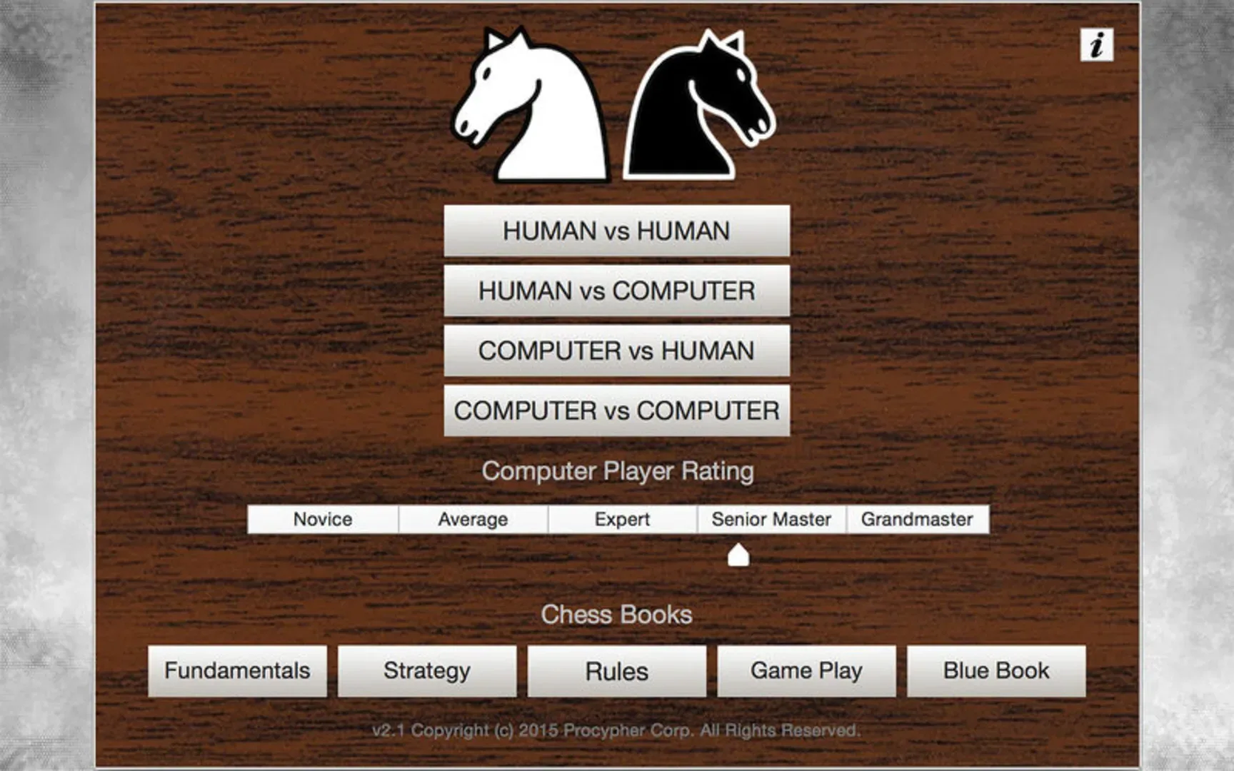 Chess Plus+ is an enhanced computer chess game powered by a sophisticated artificial intelligence engine resulting in automated opponent player ratings ranging from Novice to Grandmaster! With Chess Plus+ you will engage in challenging computer player chess games whether you're just starting out or an old pro. Algorithmically varied computer opponent gameplay simulates real-world match conditions. The game includes 4 chess ebooks built-in for offline reading on chess fundamentals, strategy, gameplay, and openings.