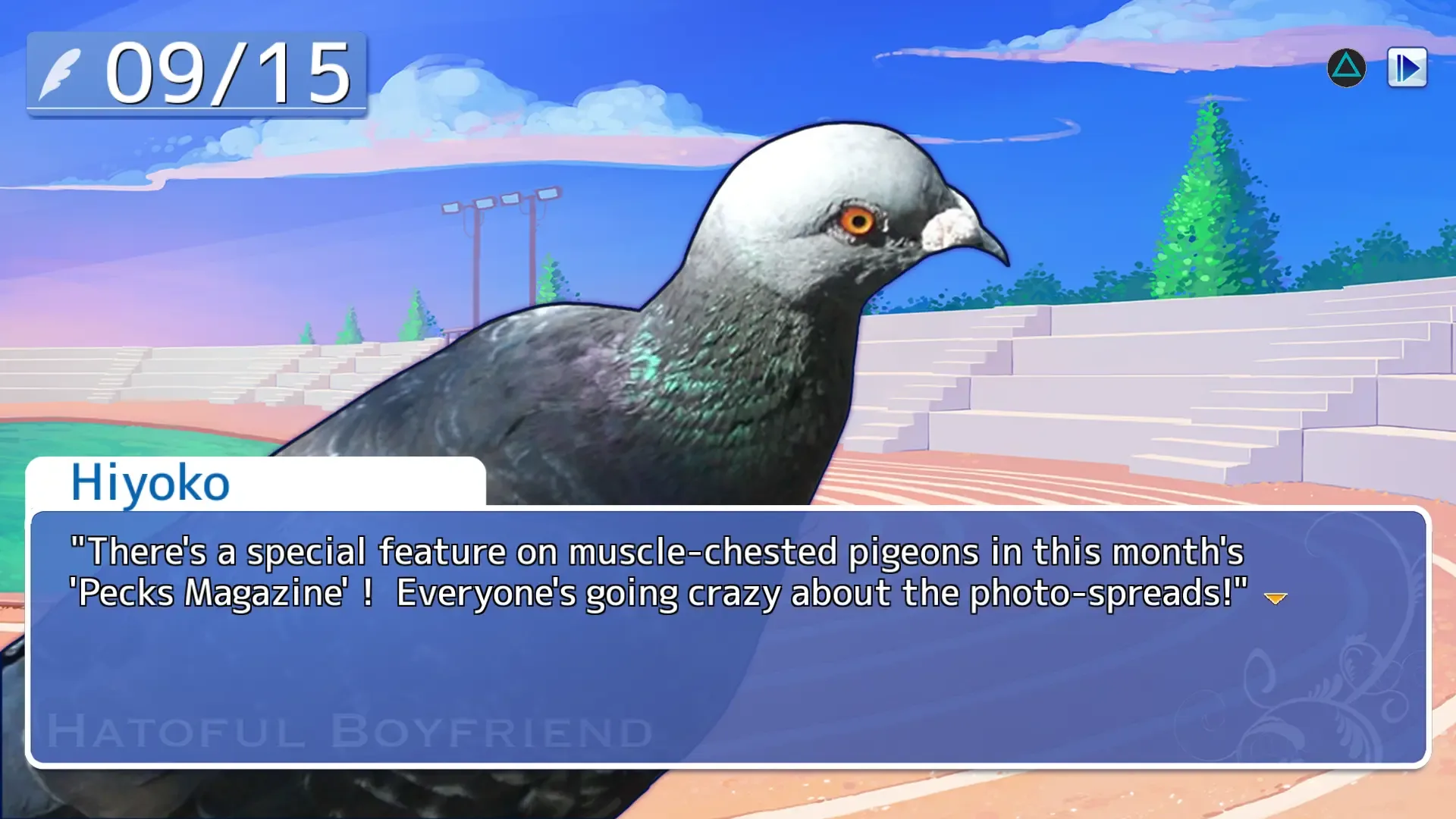 Congratulations! You've been accepted as the only human student at the prestigious St. PigeoNation's Institute, a school for talented birds! Roam the halls and find love in between classes as a sophomore student at the world's greatest pigeon high school. Finding happiness won't be easy, but it’s not all academic — there's always time for a little romance in this delightful remake of Hato Moa's popular visual novel / avian dating sim Hatoful Boyfriend!