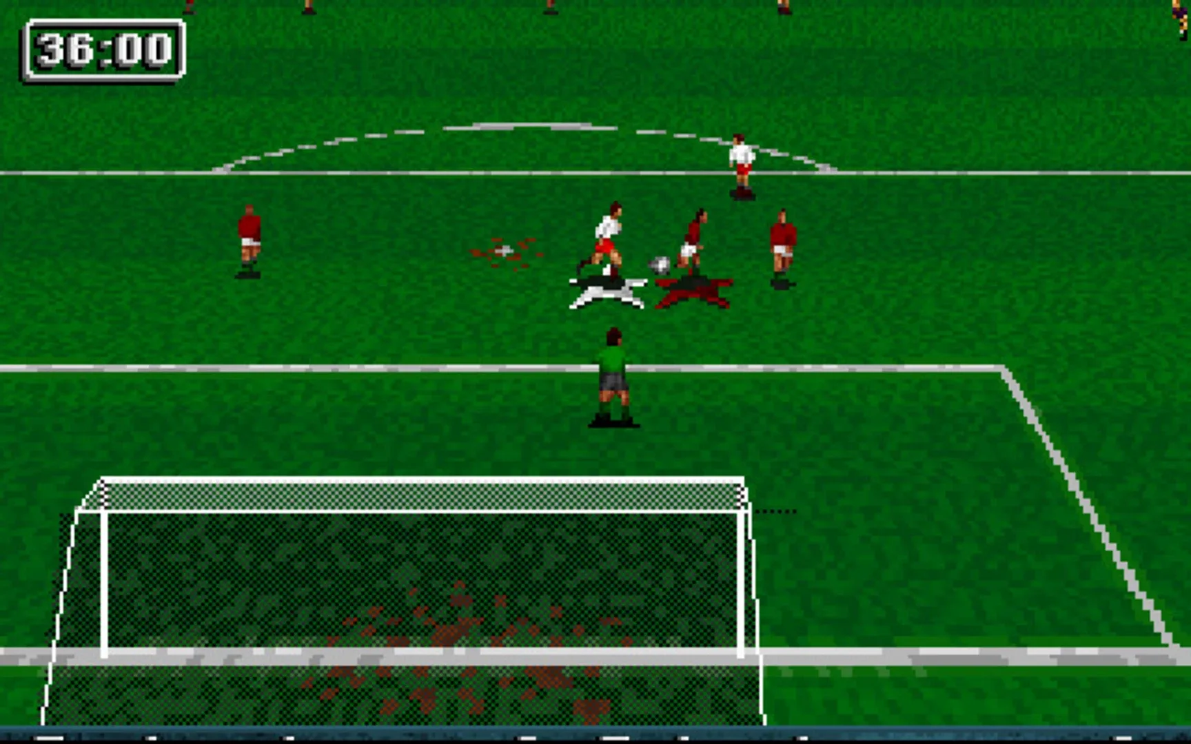 Striker ’95 is the another entry in the popular Striker series. However, this sequel manages to improve on its predecessors almost in every area by featuring a more fluid and friendly gameplay, an expert in-match commentary or the customization support to edit the teams’ default settings. It also has FMV clips. First you’ll get a lot of choices in the main menu. You can decide you if you want to play a Friendly match (for a short game), Practice (the best way for rookies to learn how to play), and competitions (where you get different options, like Championship, league, Knockout and world cup). In the main menu you also have the options to edit teams! Yes you can edit your country name, and can put in your favorite names for the players on your team, an option that very few games offered at that time. You can also change the colors of your team’s uniforms, and choose the best tactic (to play in a 4-2-2 or 3-5-2 formation and such). You can even change the face of your players. Fantastic, isn’t it?! And another great option of this game is that all players have their unique statistics. But the possibilities don’t end here. You even get to choose between an indoor and a traditional outdoor tournament. The indoor tournaments (as you may know) are actually a whole different game of soccer. The ball can never be out of the field, your players run faster, and there are many more differences that make separate this game from the traditional game. You can play with comments, like the British style that you can see on TV, and with or without music. You can define the time for every match (it can be between 2 and 10 minutes) and you can play either with the keyboard, or with a joystick. The graphics are good for the time of game’s release, at the same style is similar to Vr Soccer, they use a 3D environment, that gives you more realistic movements of the players, which gives a more realistic feel while playing soccer. This game also has an option for two players, playing in the same team or one against the other. The music is good, but after a while it can get too repetitive, but since this is a soccer game you can turn the music off.