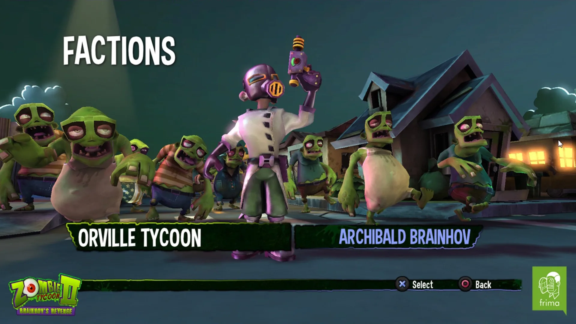 Choose your side in the epic war between two masterminds of Evil: apprentice-gone-rogue Orville Tycoon and his army of heavy-duty zombies, or his vengeance-thirsty mentor Professor Brainhov and his rioting mass of twitchy brain-munchers. Triumph over other players in adrenaline-charged Multiplayer deathmatchers and seal the fate of the last survivors of Finkleville in the Single player campaign.