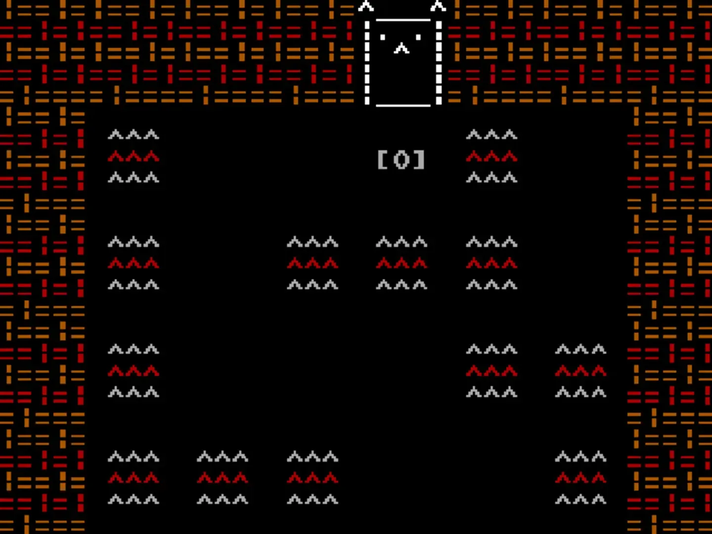 Catloaf 2600 is a small, minimalist, retro-style type of game. You are Catloaf. Through mysterious means, the nemesis foe, Master Meatloaf, has planted you inside his twisted creation, a labyrinth of puzzles and traps. The goal is to find your way through the maze and to Master Meatloaf himself, who is waiting at the end. The path is blocked by a series of puzzles. Find keys to unlock doors, push secret walls to reveal new rooms, move a boulder down a corridor to complete a sokaban-style puzzle, and memorize the path around traps before the lights go out. Switches shift the walls of the maze to reveal new paths and secrets. The graphics are drawn with all ASCII characters. You use the keyboard to navigate.