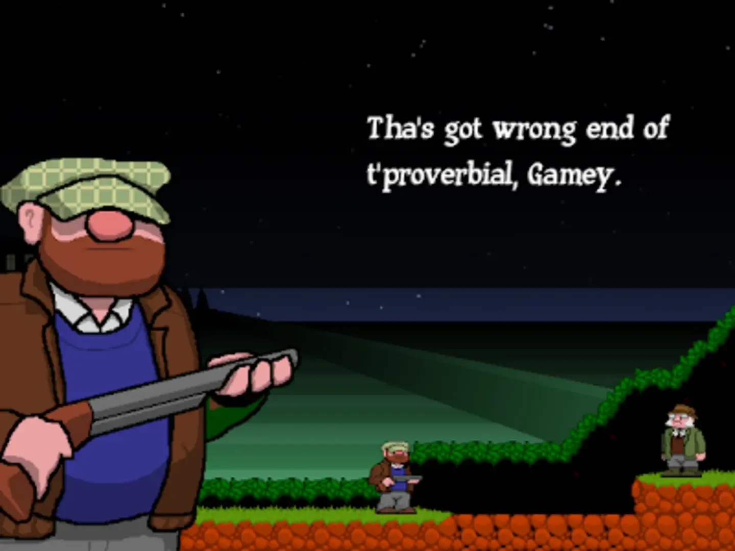 Poacher is a 2D side-scrolling Metroidvania starring stout Yorkshireman Derek Badger and his trusty shotgun.
