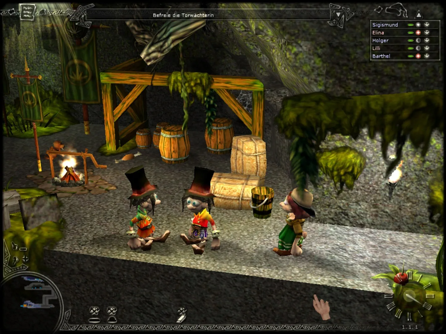 Godfather Odin has chosen the Diggles to set out on a long and burdensome expedition to the center of the earth where the hound of hell, Fenris, spreads terror. Fenris was once Odin's watchdog and ran away. Ever since he became aware of his growing power and strength he has been terrifying the underground world. Fenris must be disarmed and put on a chain. This task requires a very special chain, a chain that can only be forged by the Diggles... Accomplishing this dangerous mission will take decades and involved many generations of dwarves. During their journey the dwarves have to pass through 4 different worlds and more than 100 different quests have to be solved. The player has to arrange a daily schedule for the dwarves by determining how much they work and what they do in their leisure time. The player has to teach them how to forge weapons, cook mushrooms, raise hamsters, produce tools and invent machines. Like people in real life, the dwarves also want to have some spare time in order to sleep, eat, play cards, go bowling or to a pub. Male and female Diggles can even fall in love with each other and thus conceive their offspring, which ensures the survival of their clan and can transmit their learned attributes to their dwarf children. The player's most important goal is to prepare the Diggles for the crucial fight with Fenris.