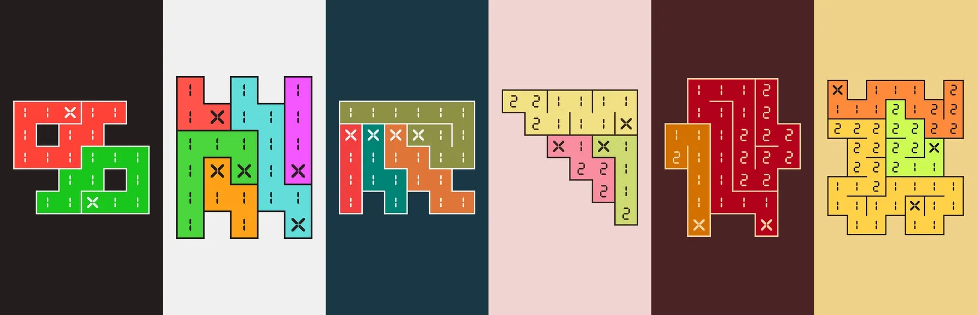 Cardinal Chains is a minimalist puzzle game centering on the concept of non-decreasing sequences. Each puzzle begins with a monochrome grid of numbers, plus a few colored cells marked with an X. Starting at these cells, you must link up numbers in non-decreasing order until the whole grid is filled with color.