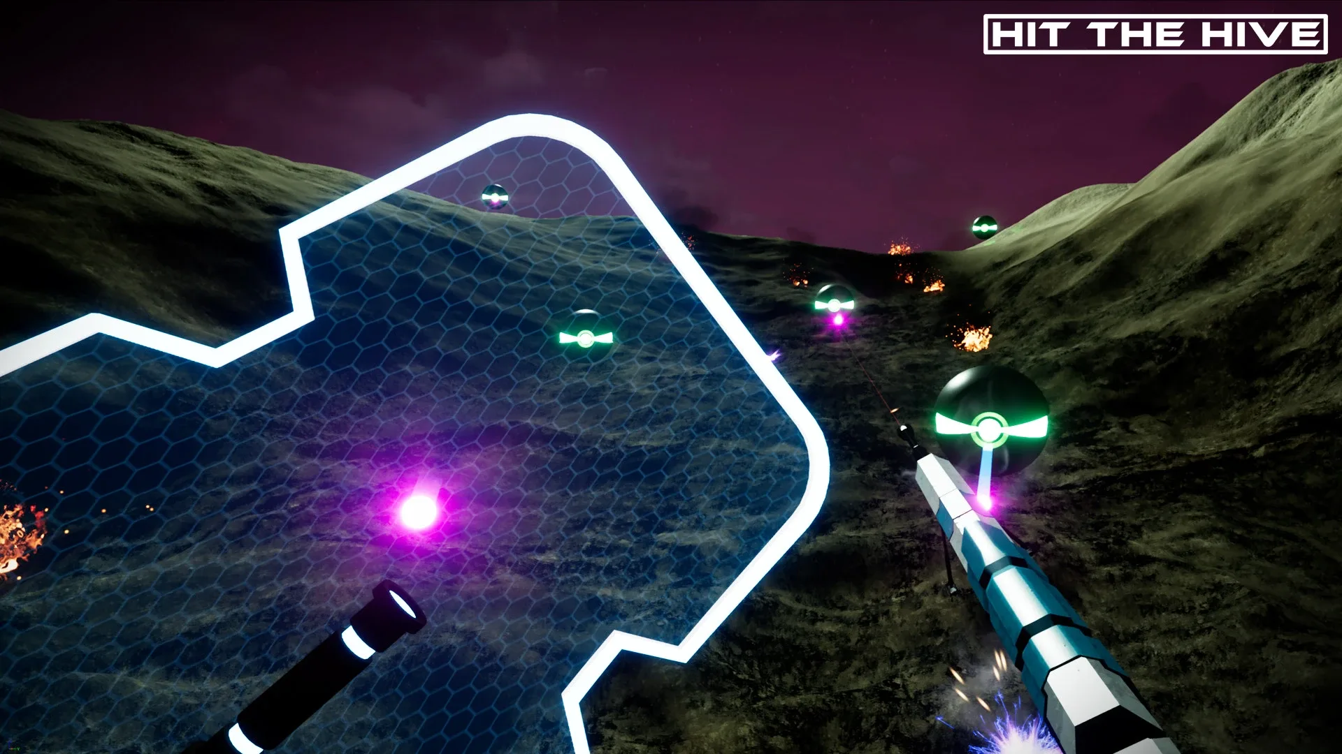 Hit the Hive is a dark Space Shooter in VR, where you must test your mettle against waves of brutal robots. HTH is focused on challenging you like never before and we utilise procedural generation to make sure no two waves are the same, ensuring a fun, energetic and novel experience every time you play.